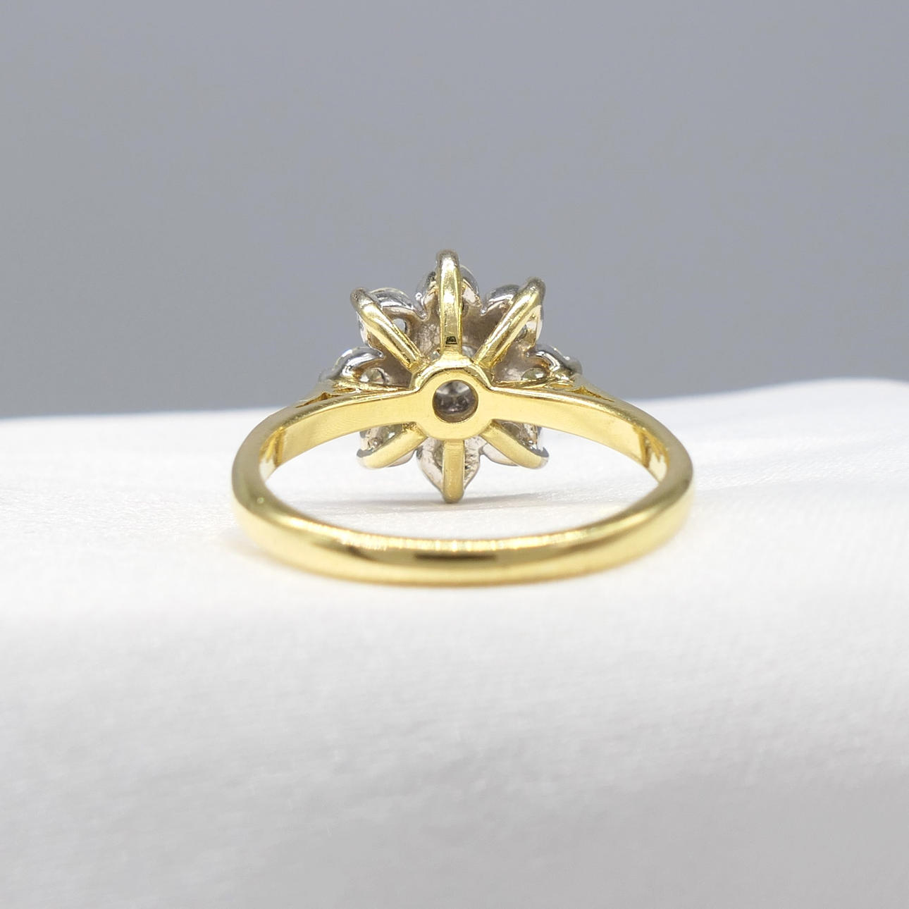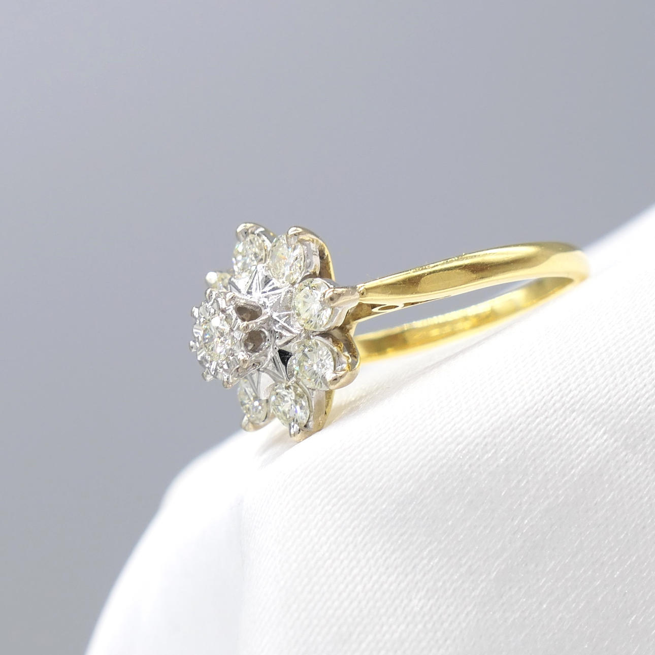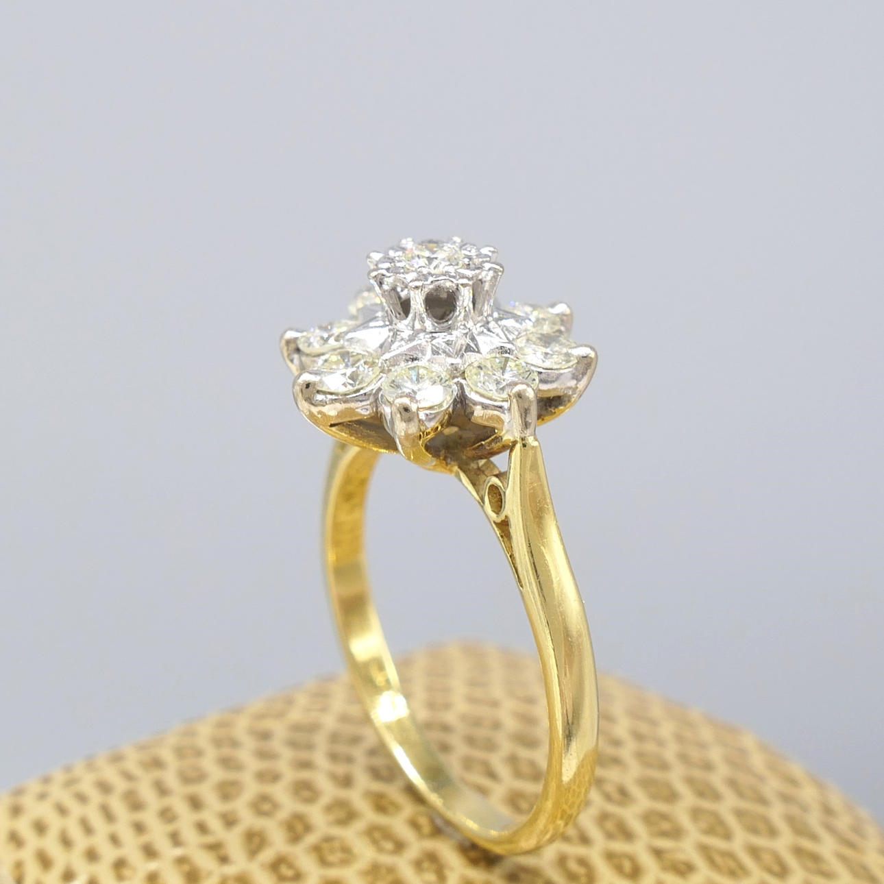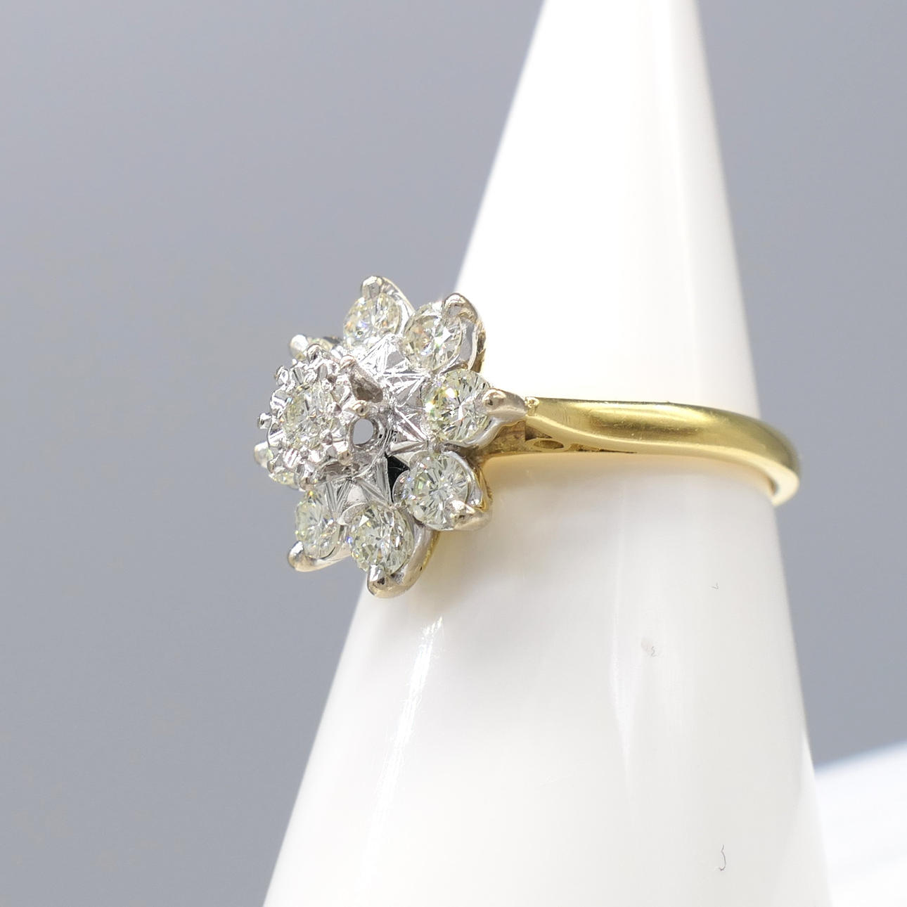 Ring: head measurements: 13 x 13mm; 18k yellow and white gold, as tested and stamped; 4.7 grams