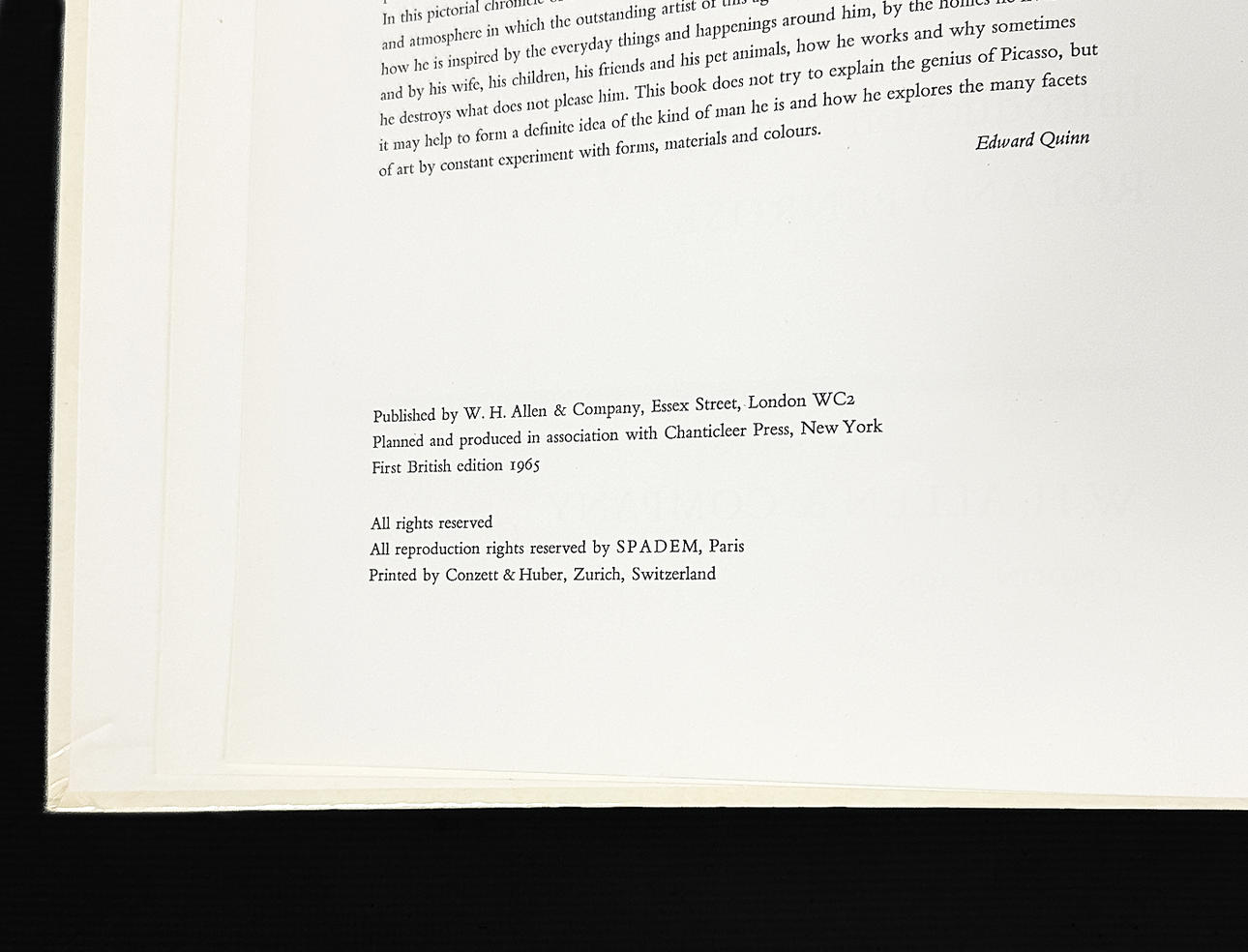 PABLO PICASSO. BOOK, “Picasso at work”, 1965.