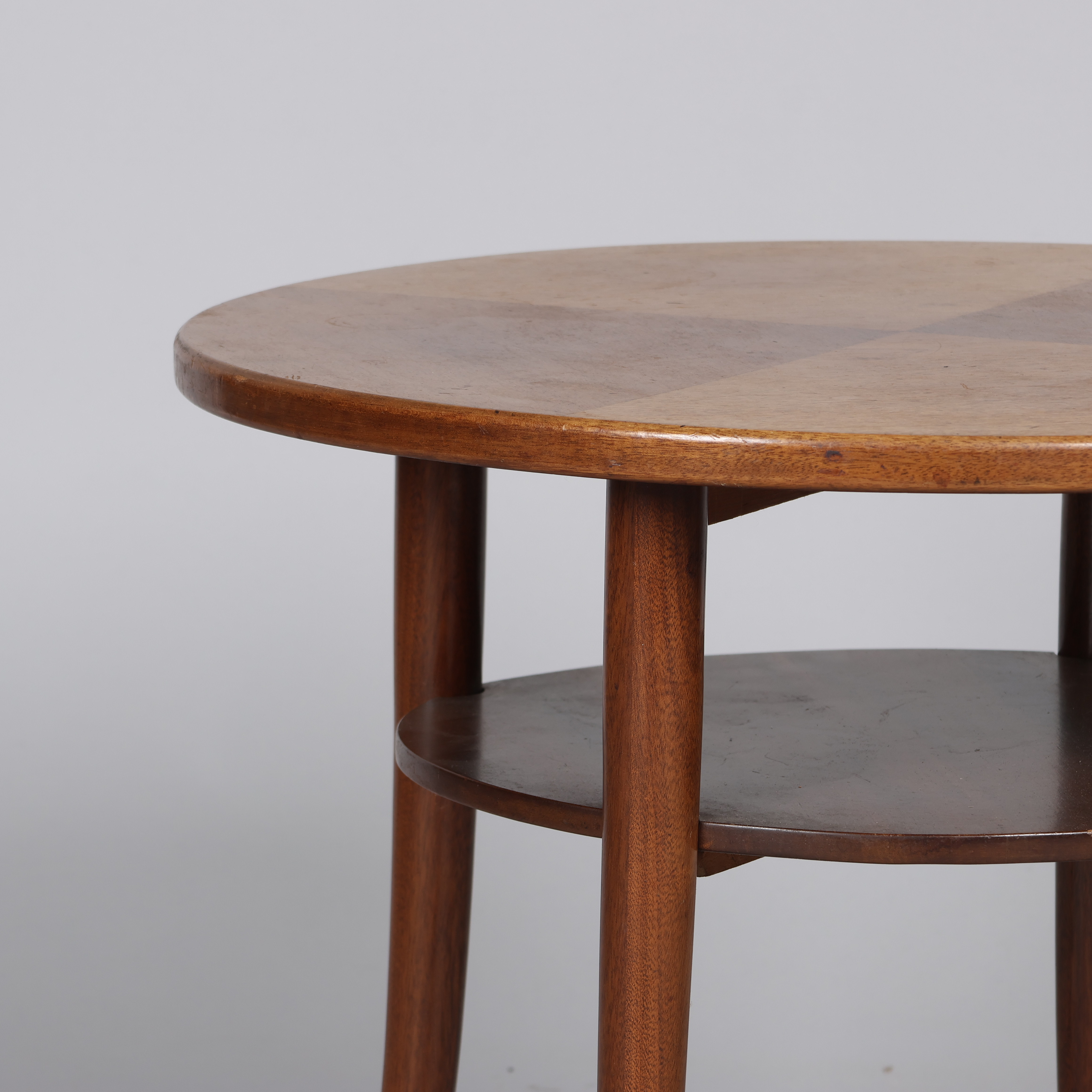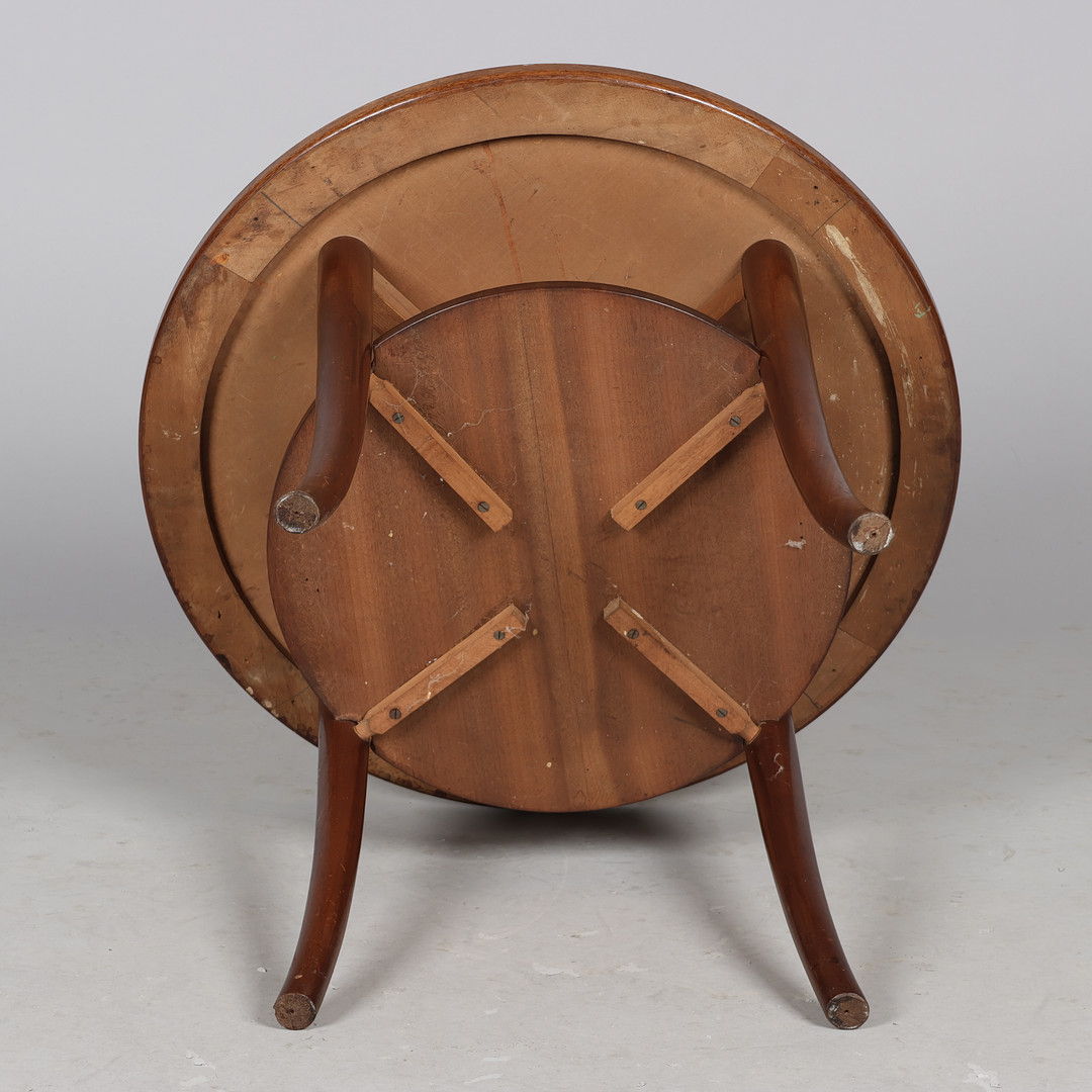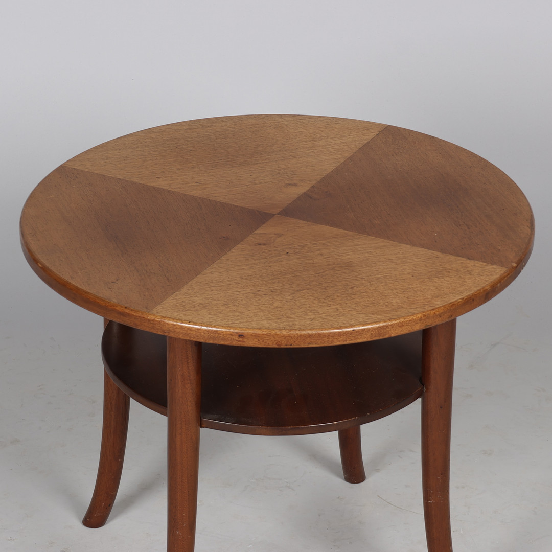 4428885. Danish master carpenter, round side table of veneered and solid mahogany with curved legs, Denmark, mid 20th century.