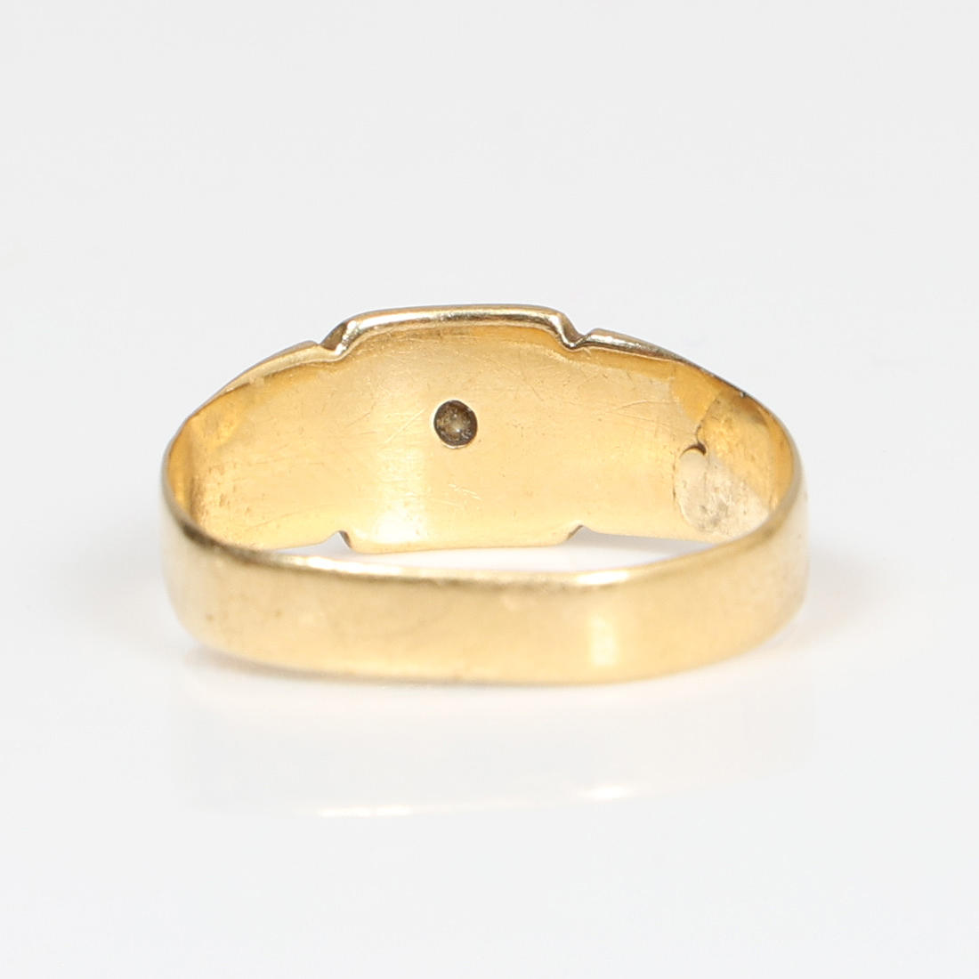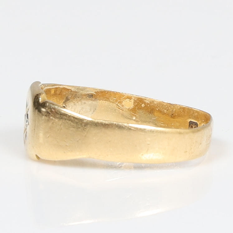 Set with a single diamond within a star cartouche, ring size T, 3.8g.