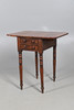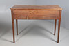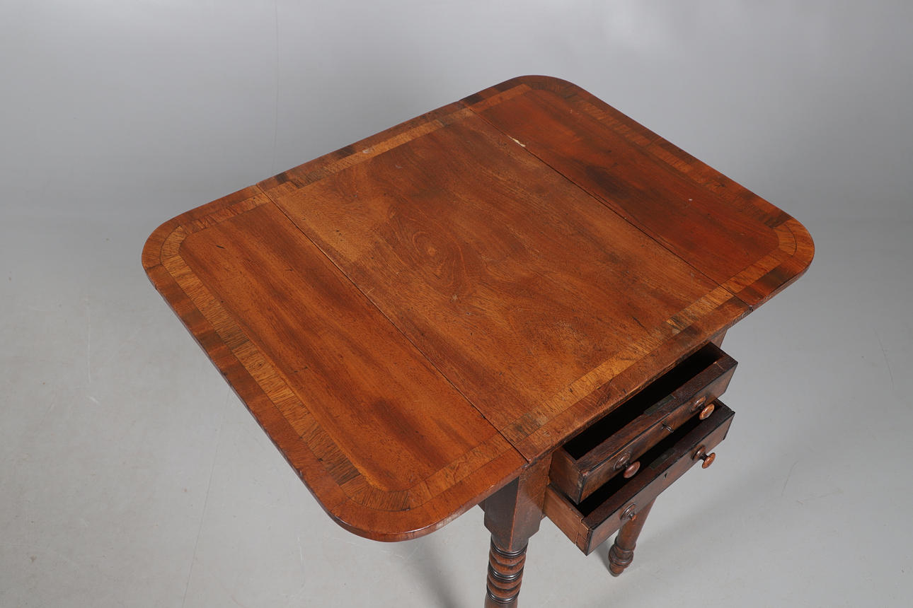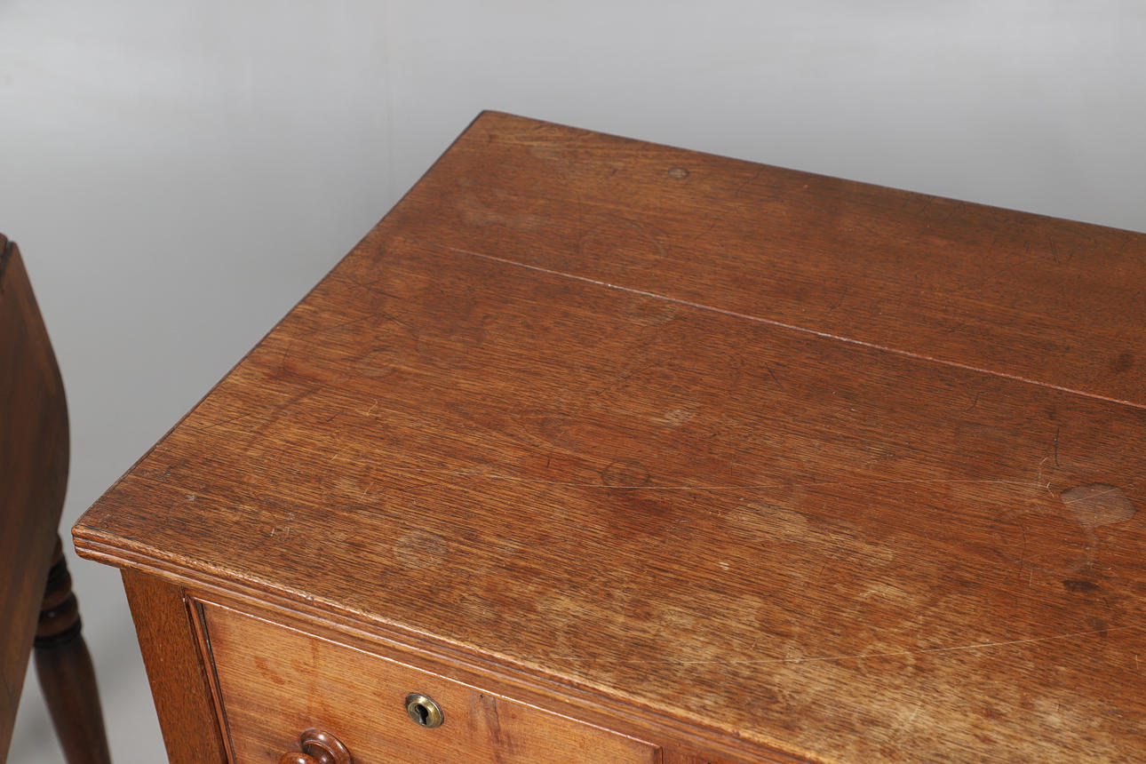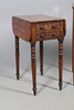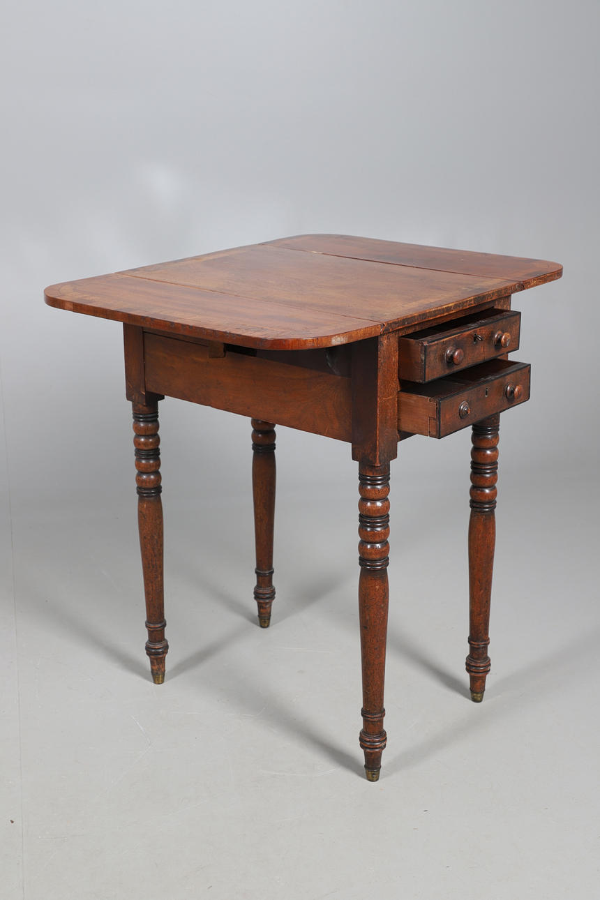 the three drawers with turned hadles, upon slender tapering legs, 79cm high x 104cm wide x 44cm deep; together with a Victorian mahogany work table, the crossbanded top over two drawers, upon ring turned supports, 69cm high x 35cm wide x 51cm deep (2).