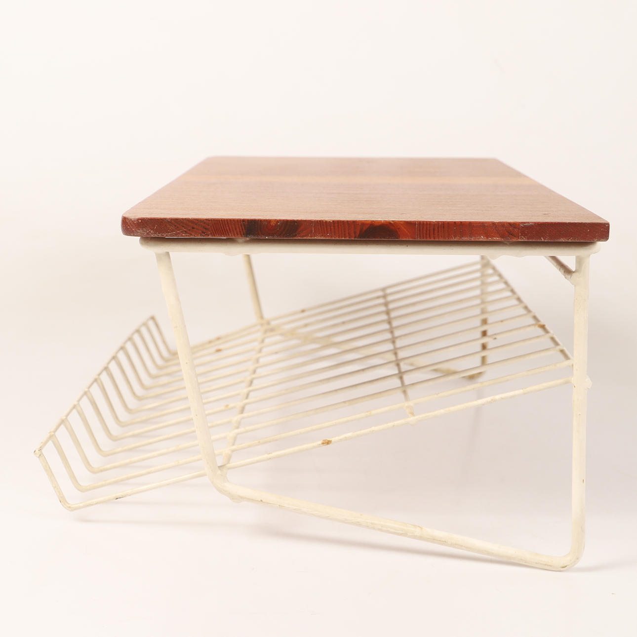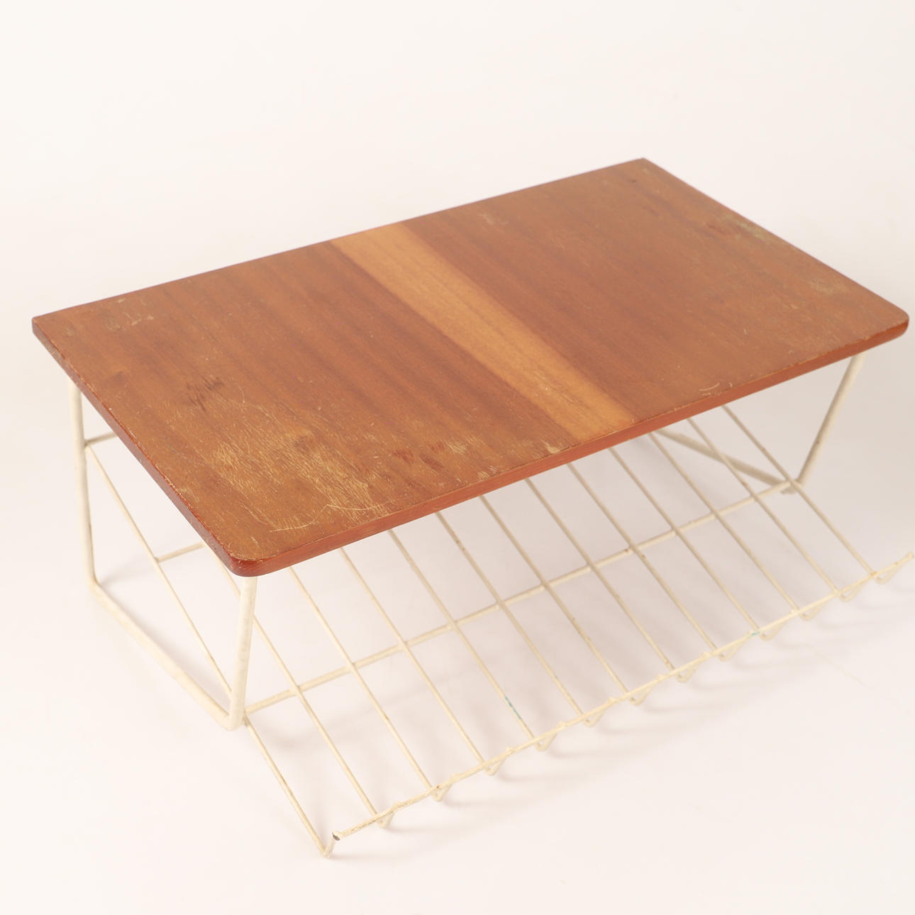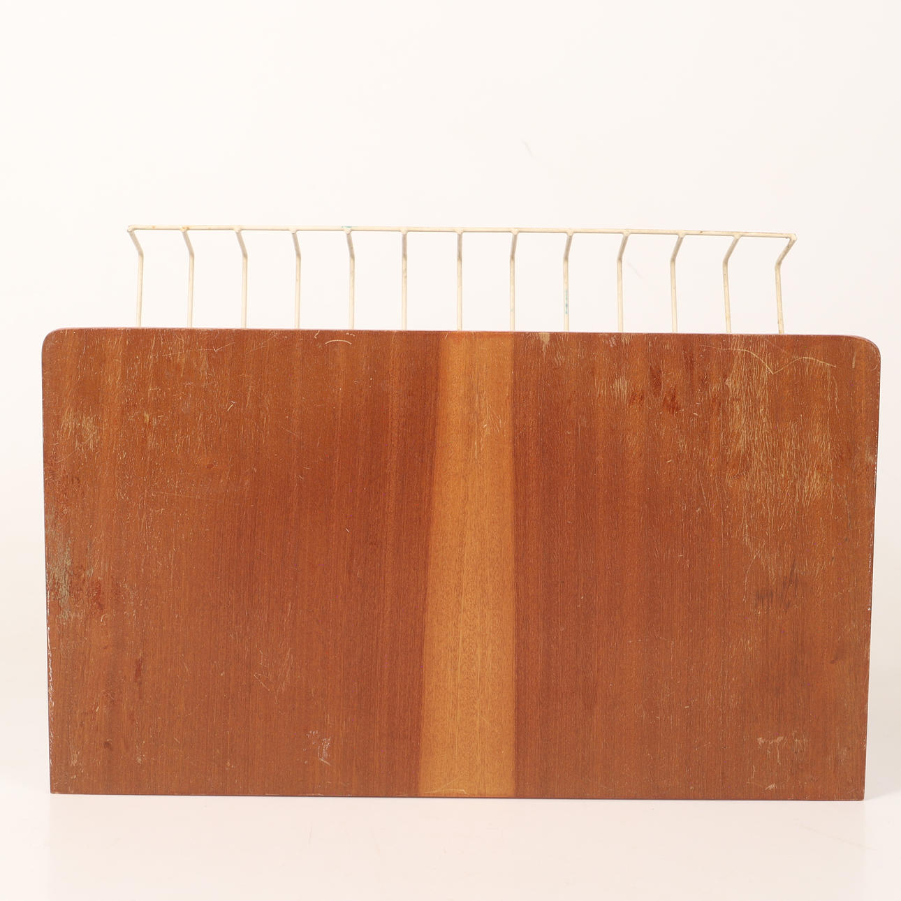 4429590. A mid 20th century string/mahogany magazine shelf.