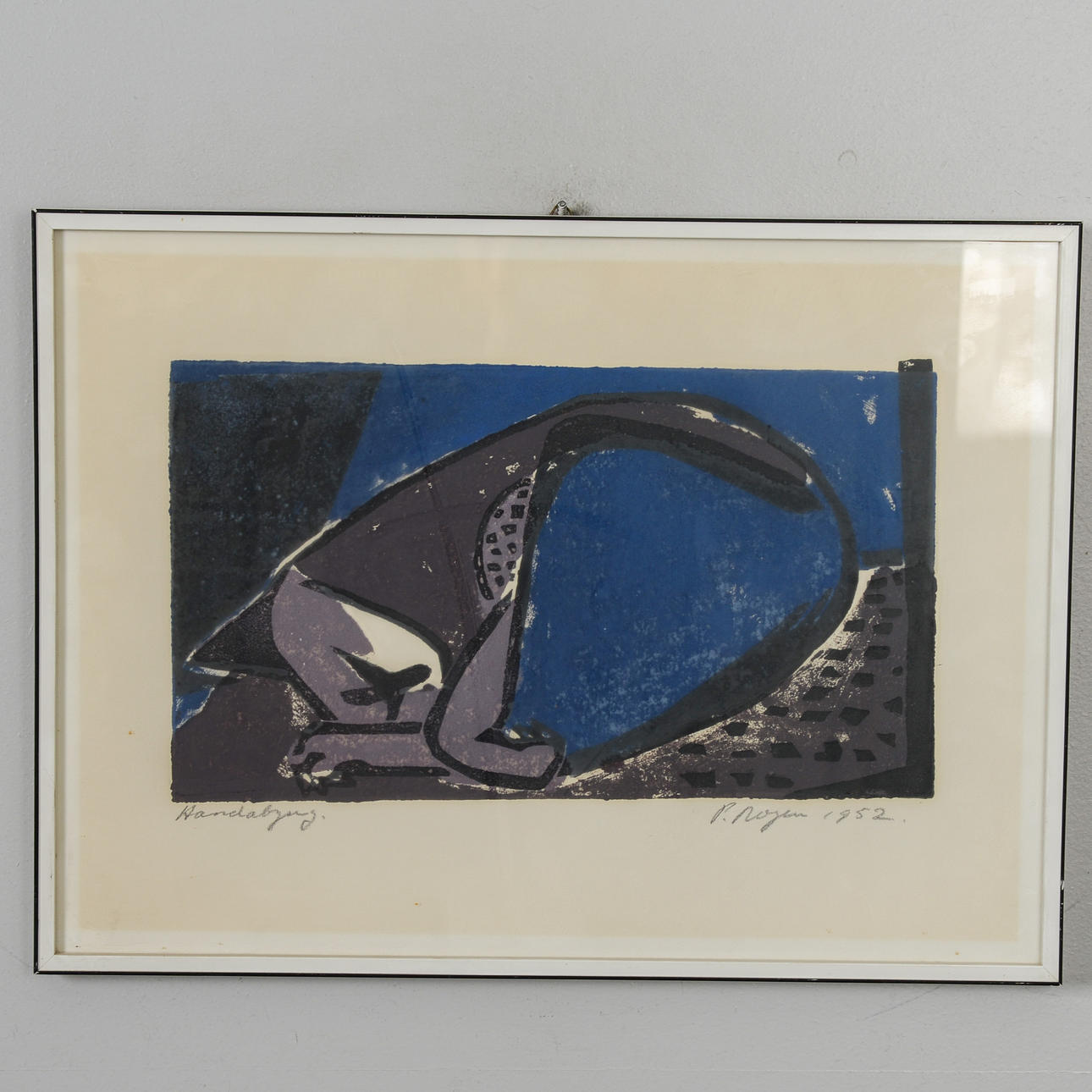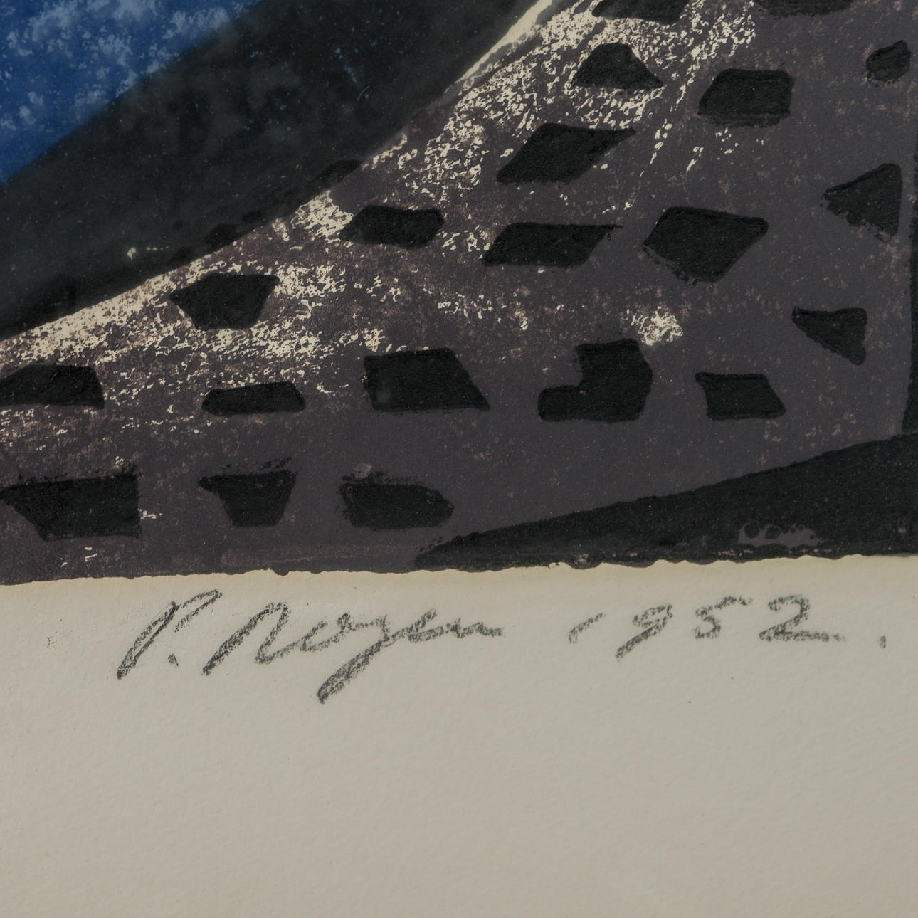 OIDENTIFIERAD KONSTNÄR. Lithograph in Colour, 1952.