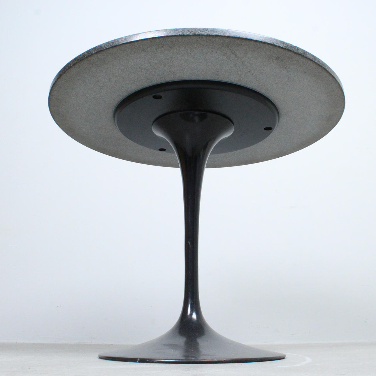 Eero Saarinen (1910-1961) for Knoll International, round table, 'Tulip' model, original base made of black lacquered cast aluminum, granite table top, frame fitted with manufacturer,