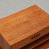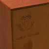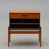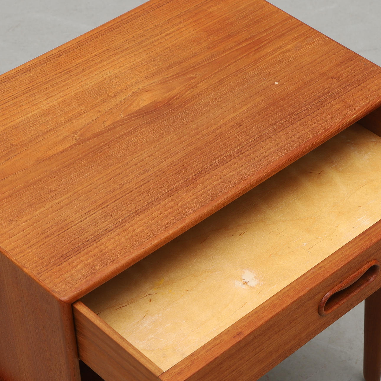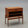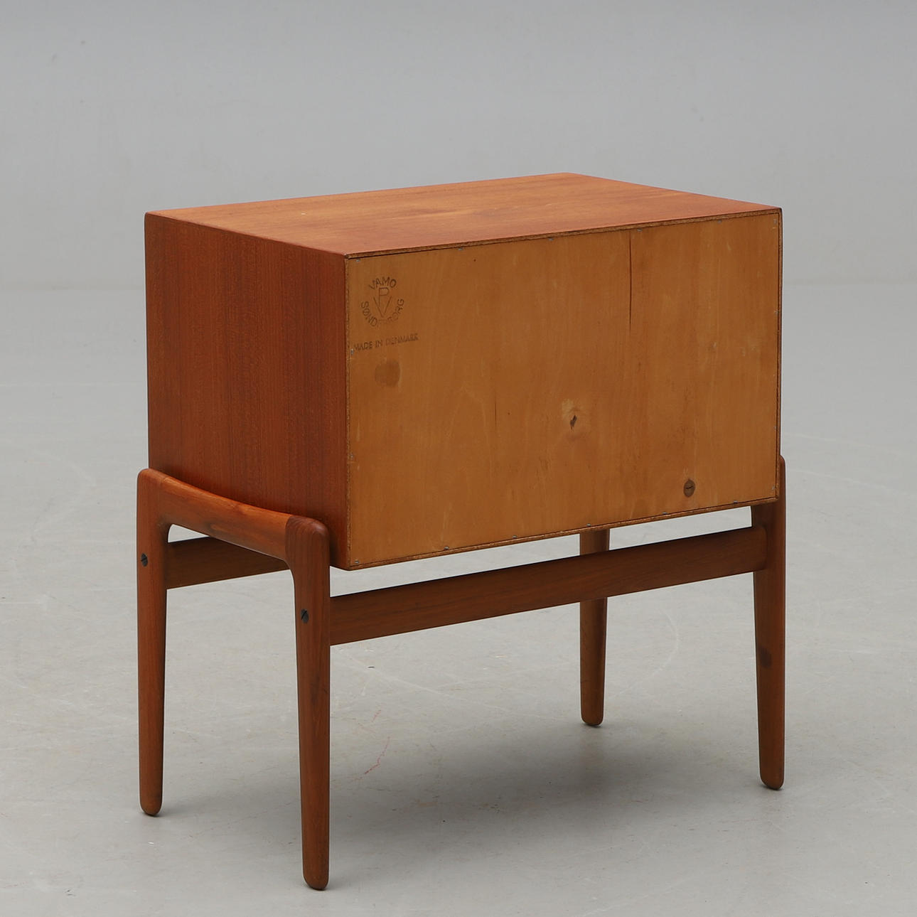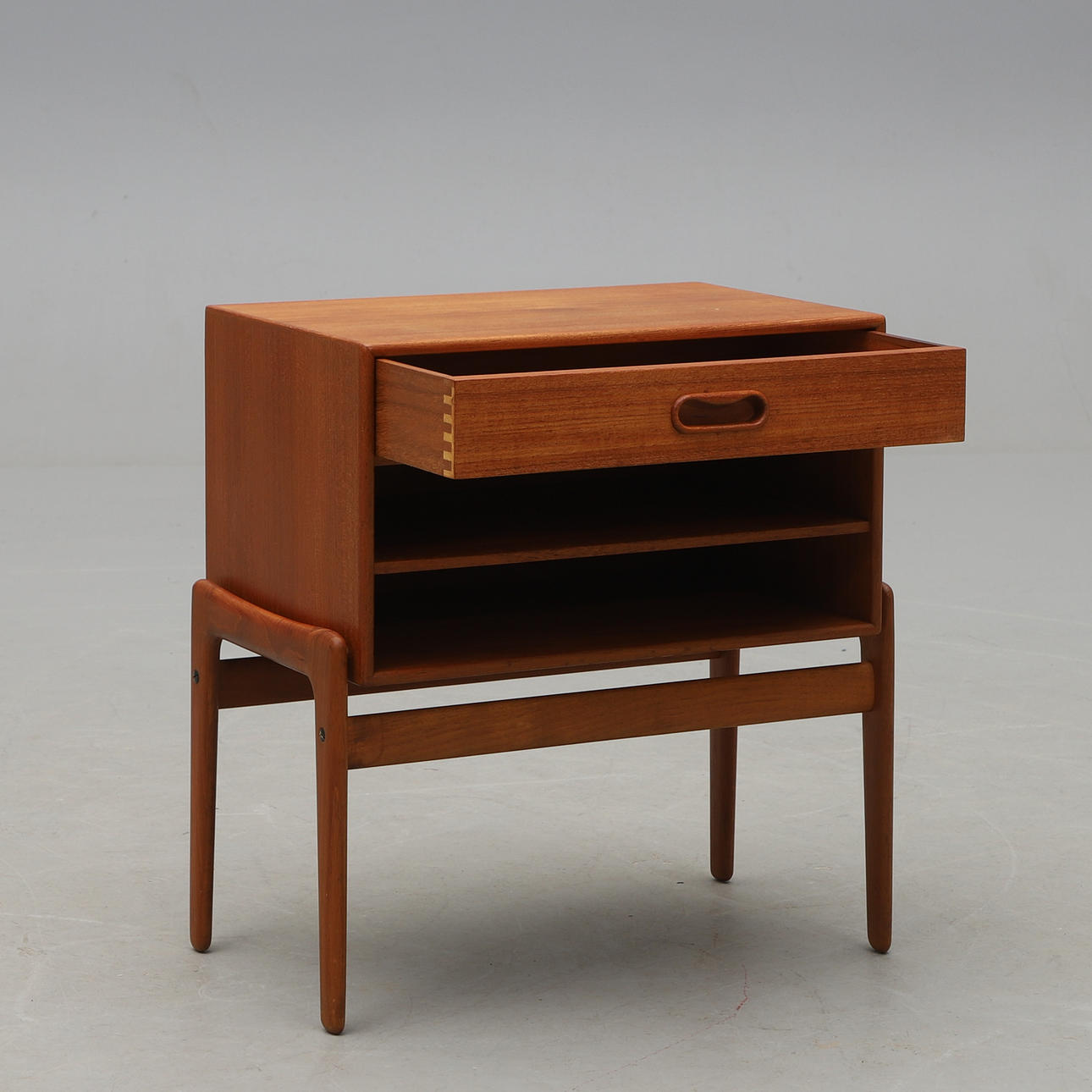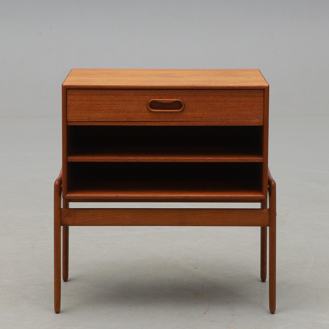 It's teak. A pull-out drawer and shelves at the bottom. Width 45, depth 30, height 52 cm.