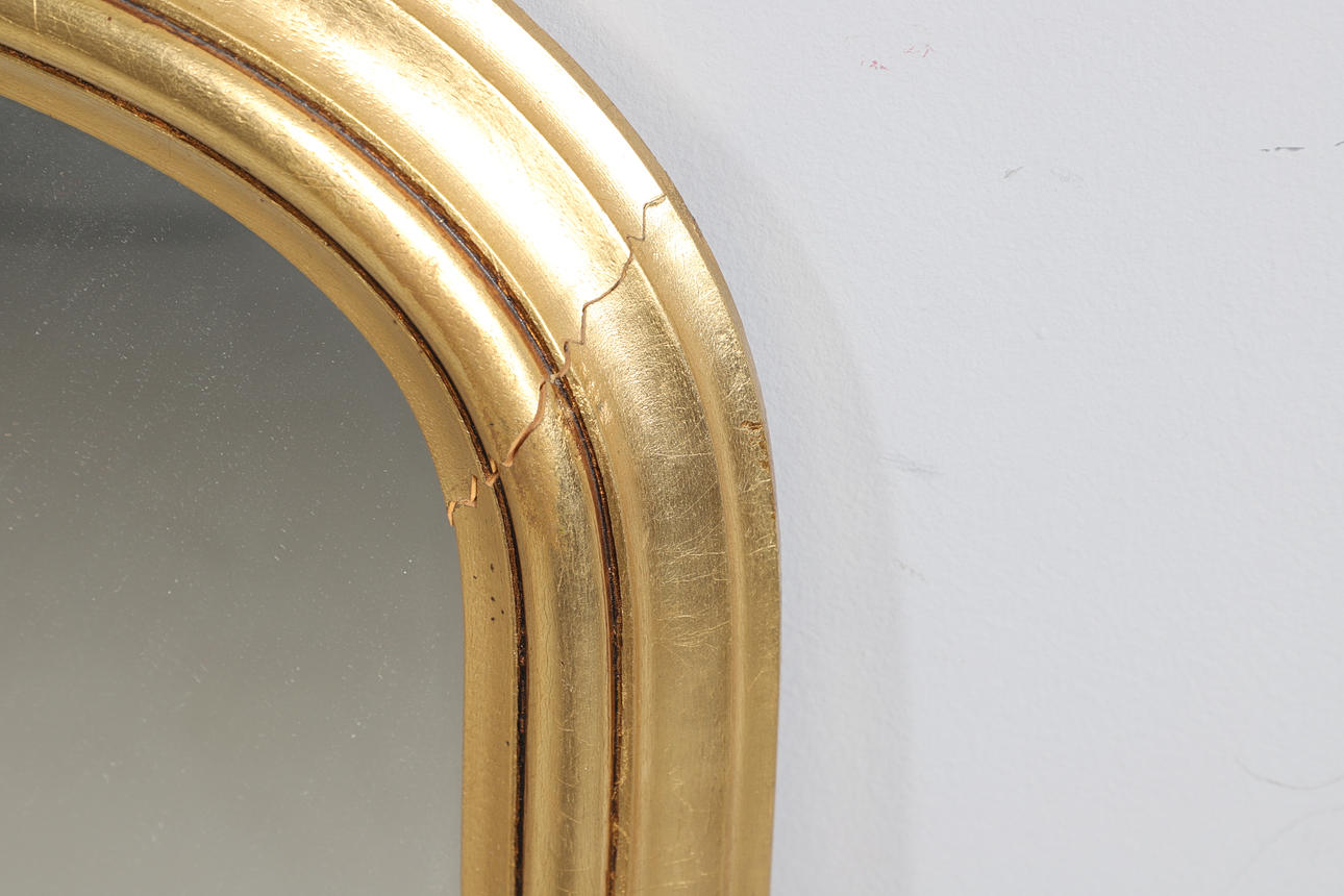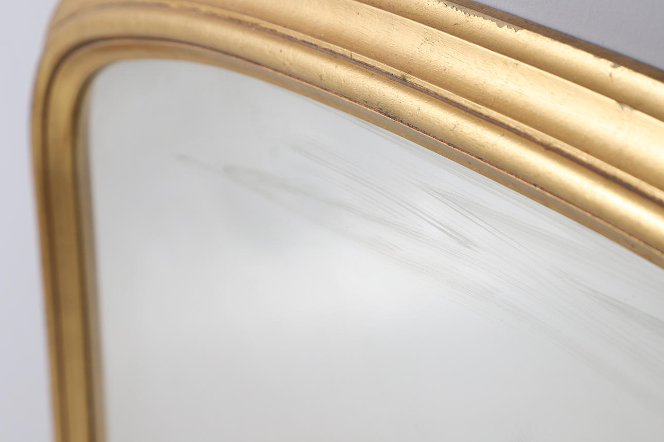 Various losses to the gilt, glass in need of a clean with various marks and minor silvering in places. Splits in places. See online images.
