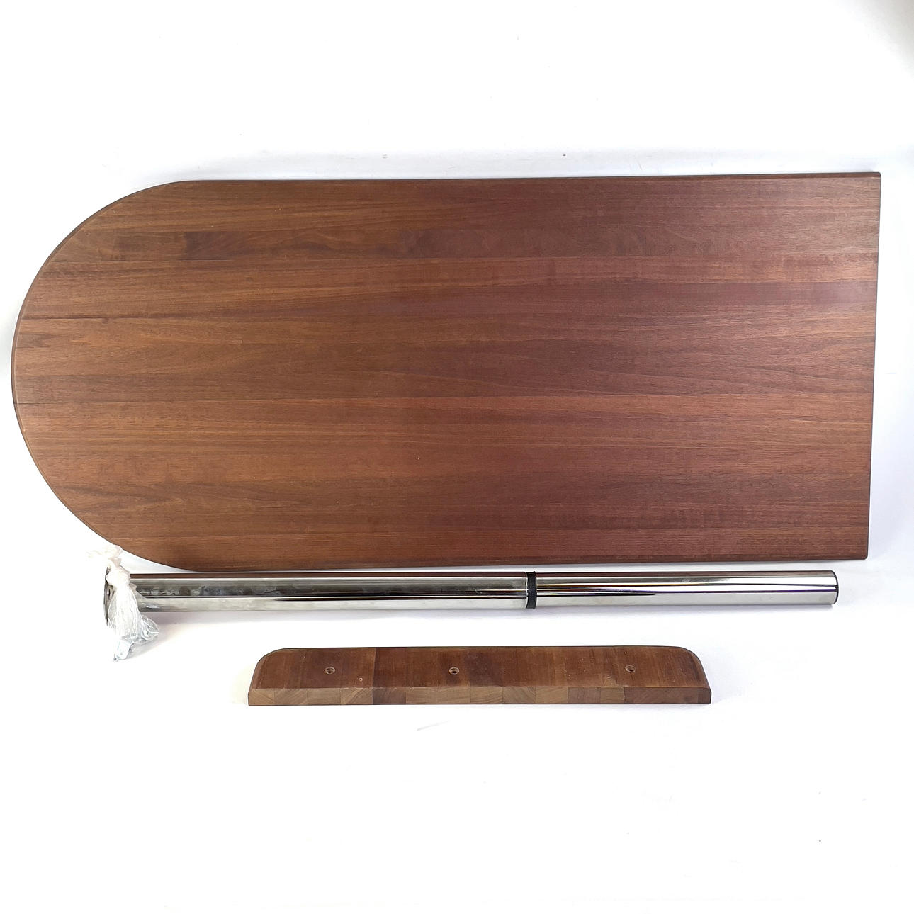 Bar table for wall mounting in acacia wood with metal support legs. Height ca 108 cm, width 131 cm, depth 60 cm.