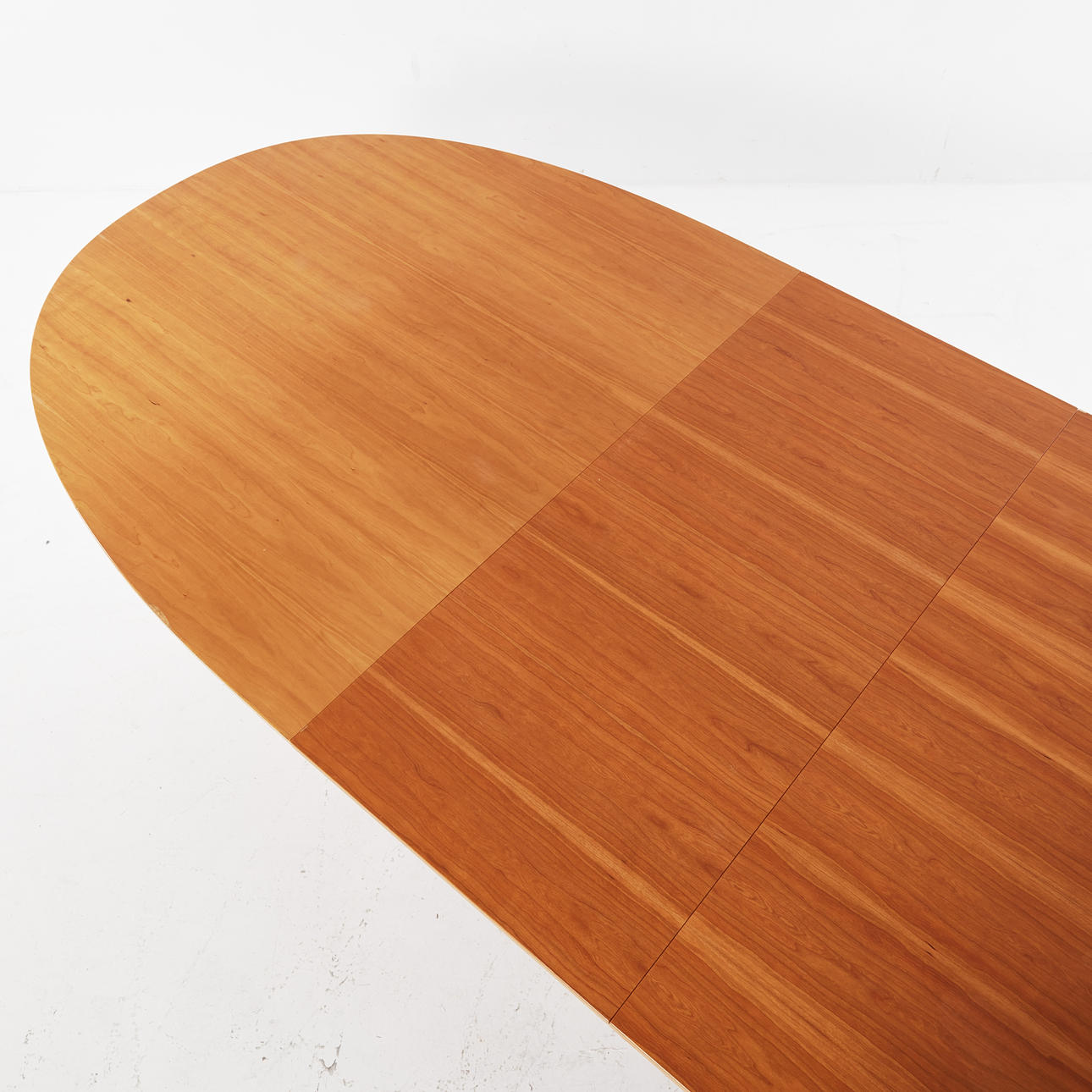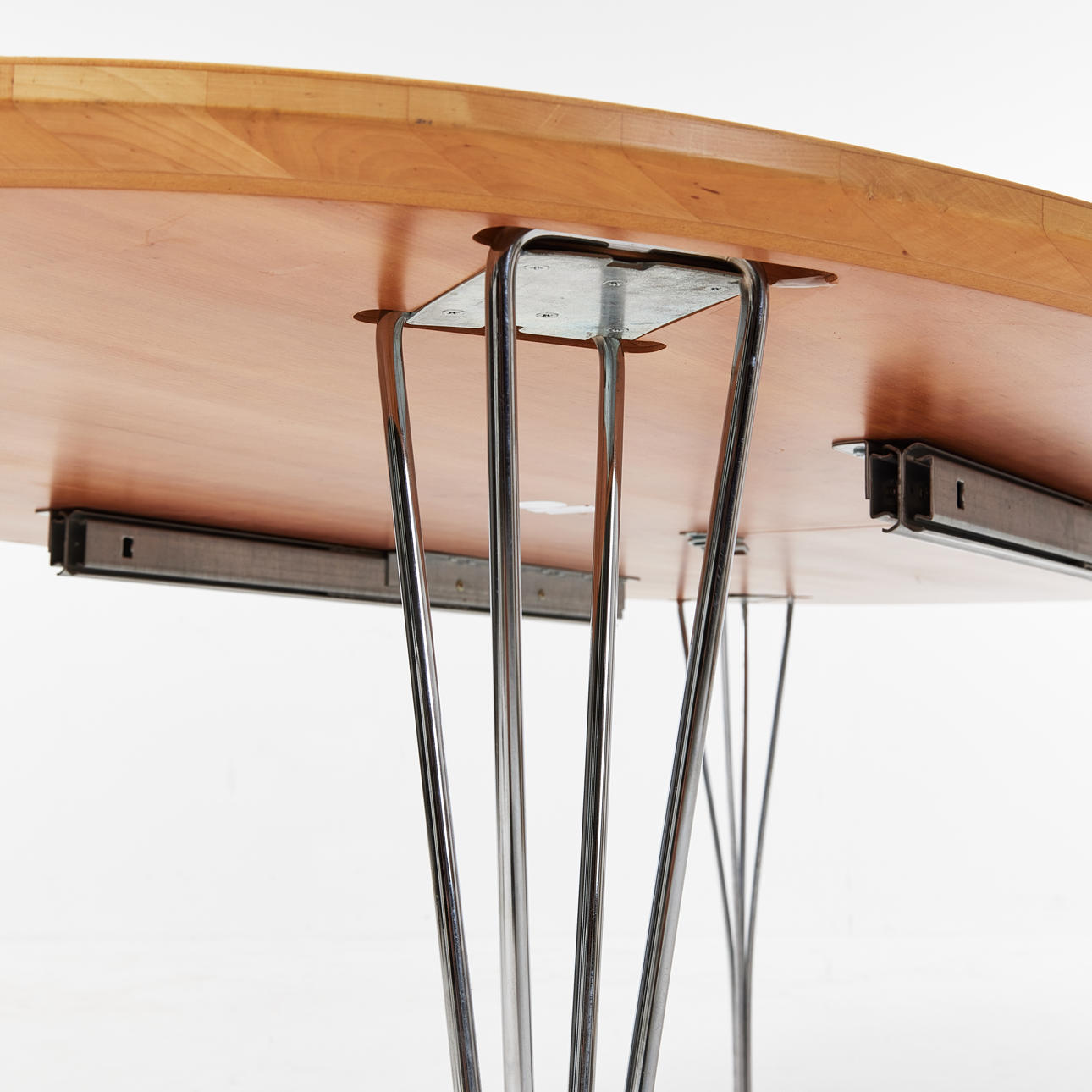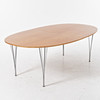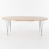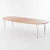 4430985. BRUNO MATHSON & PIET HEIN. “Superelips”, dining table, veneered with cherry, chromed legs, with two inserts, label Bruno Mathson International, for Fritz Hansen, 2003.