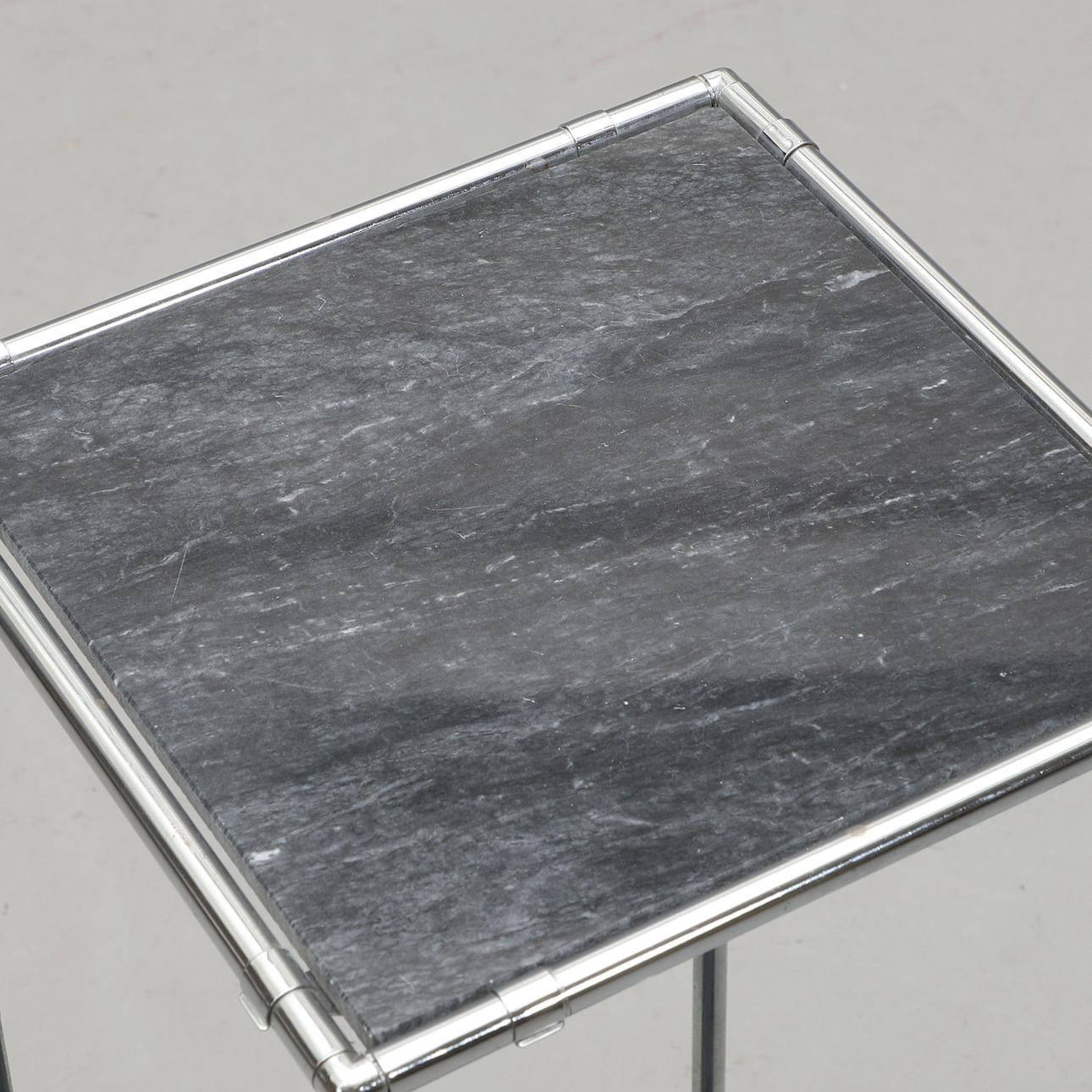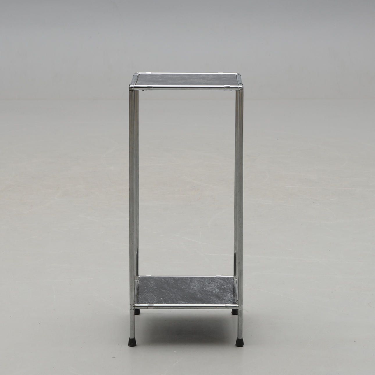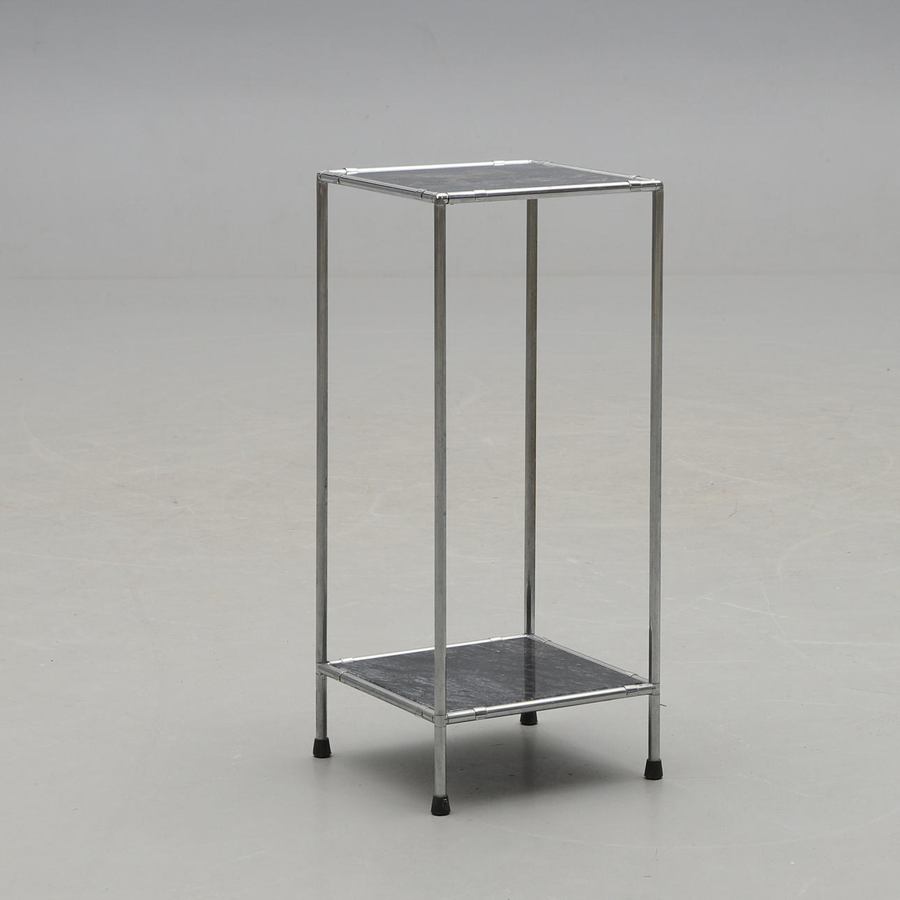 Rack of chrome-plated steel pipes. Loose shelves made of stone. 28 x 28, height 66 cm.