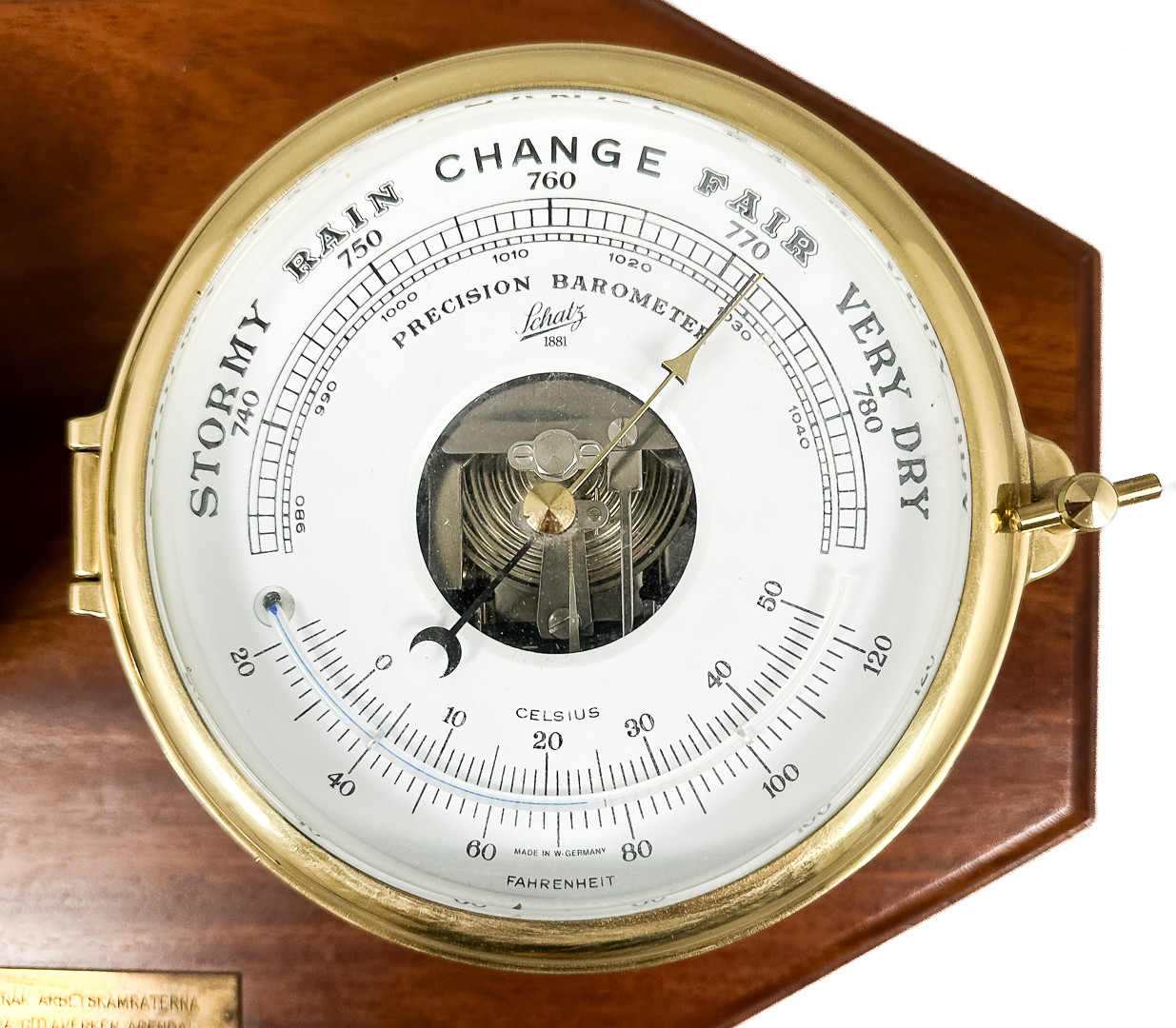 4432363. A 20th Century Schatz Ship Clock & Barometer.