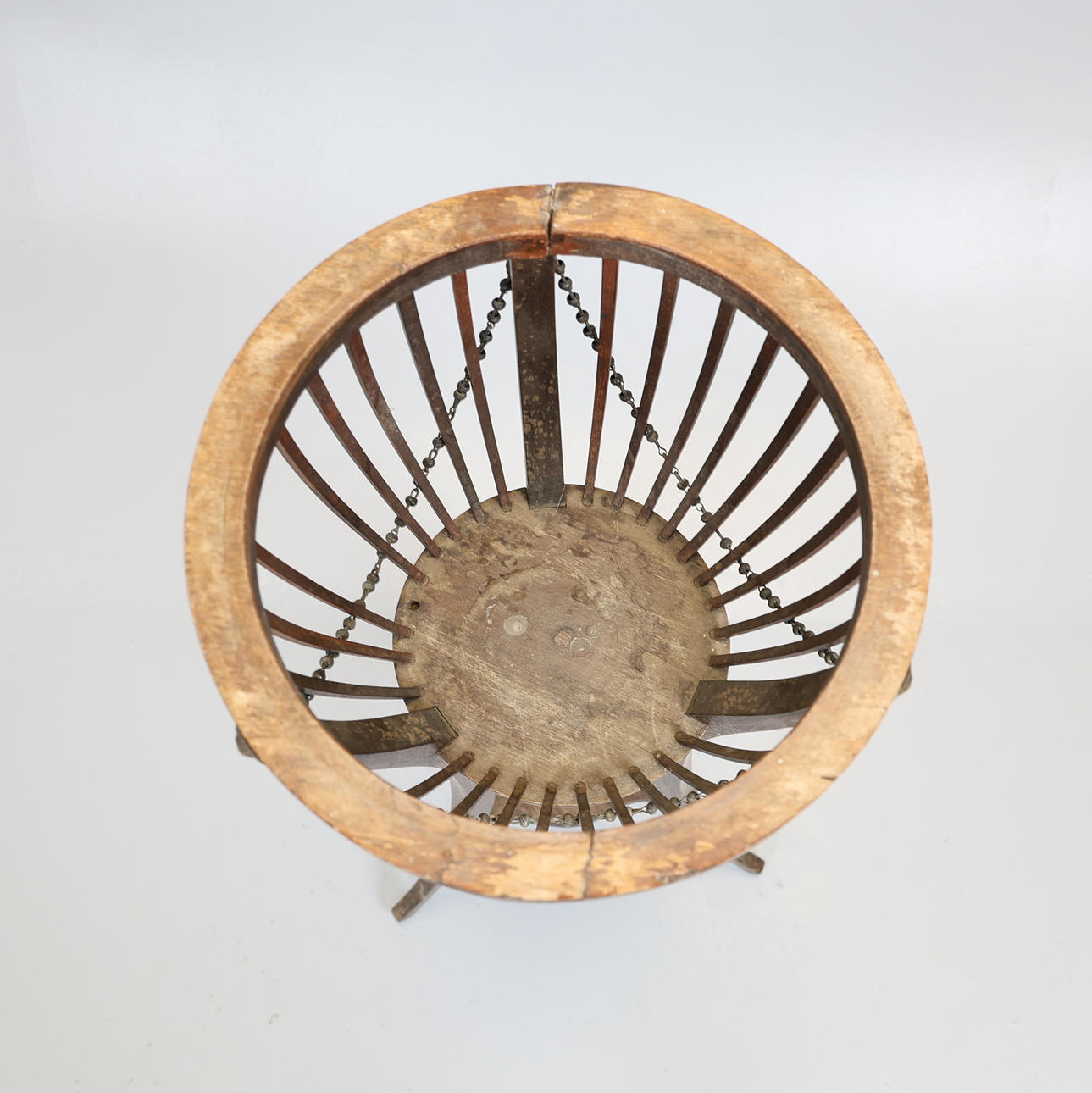 2 splits to rim, watermarks and loss to finish throughout. One slat missing.