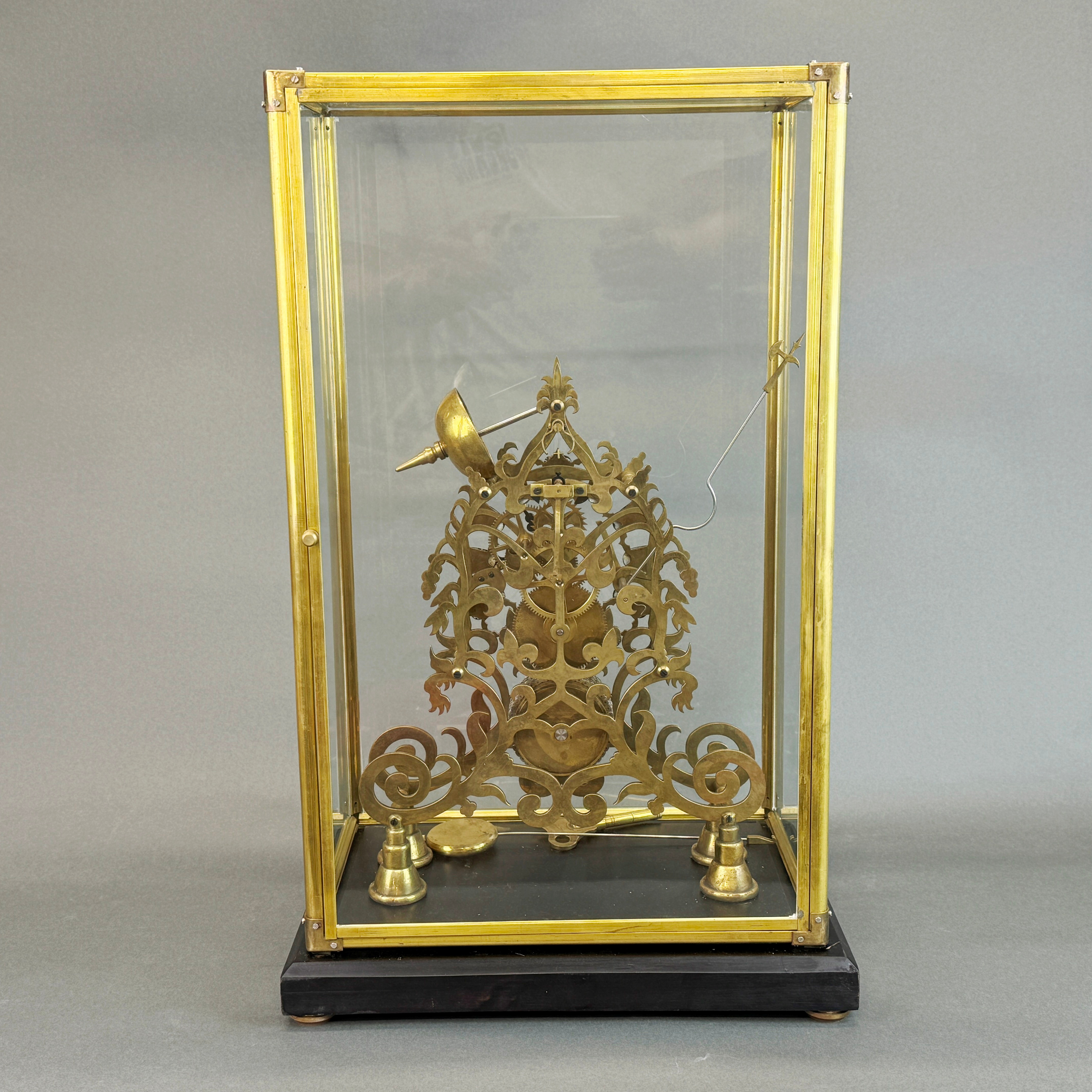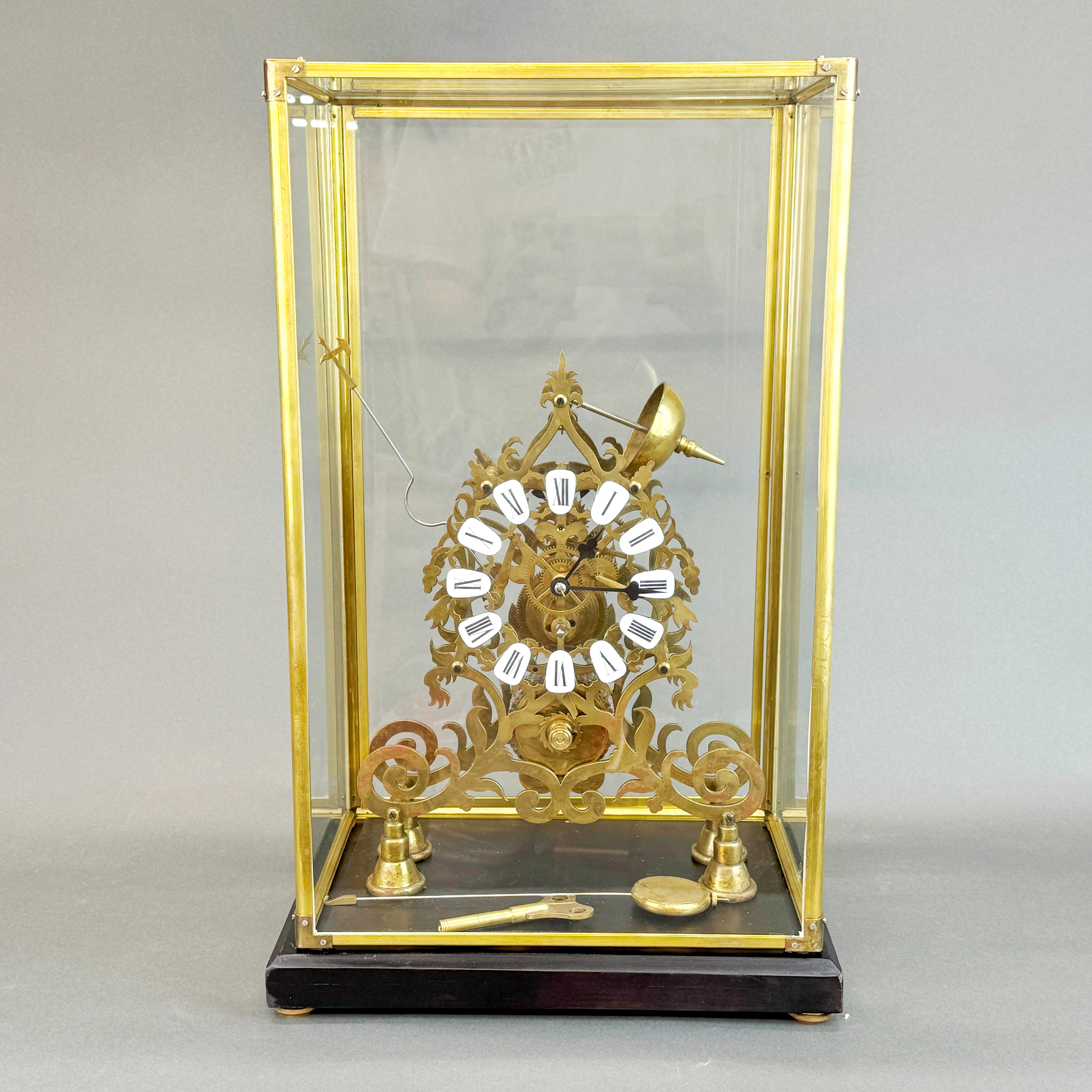 4433411. CASED BRASS SKELETON CLOCK.