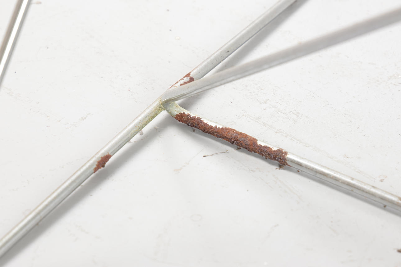 Appears with age and wear and tear, including scratches, marks and some chairs with the lower part of the frame with rust and dents.