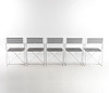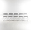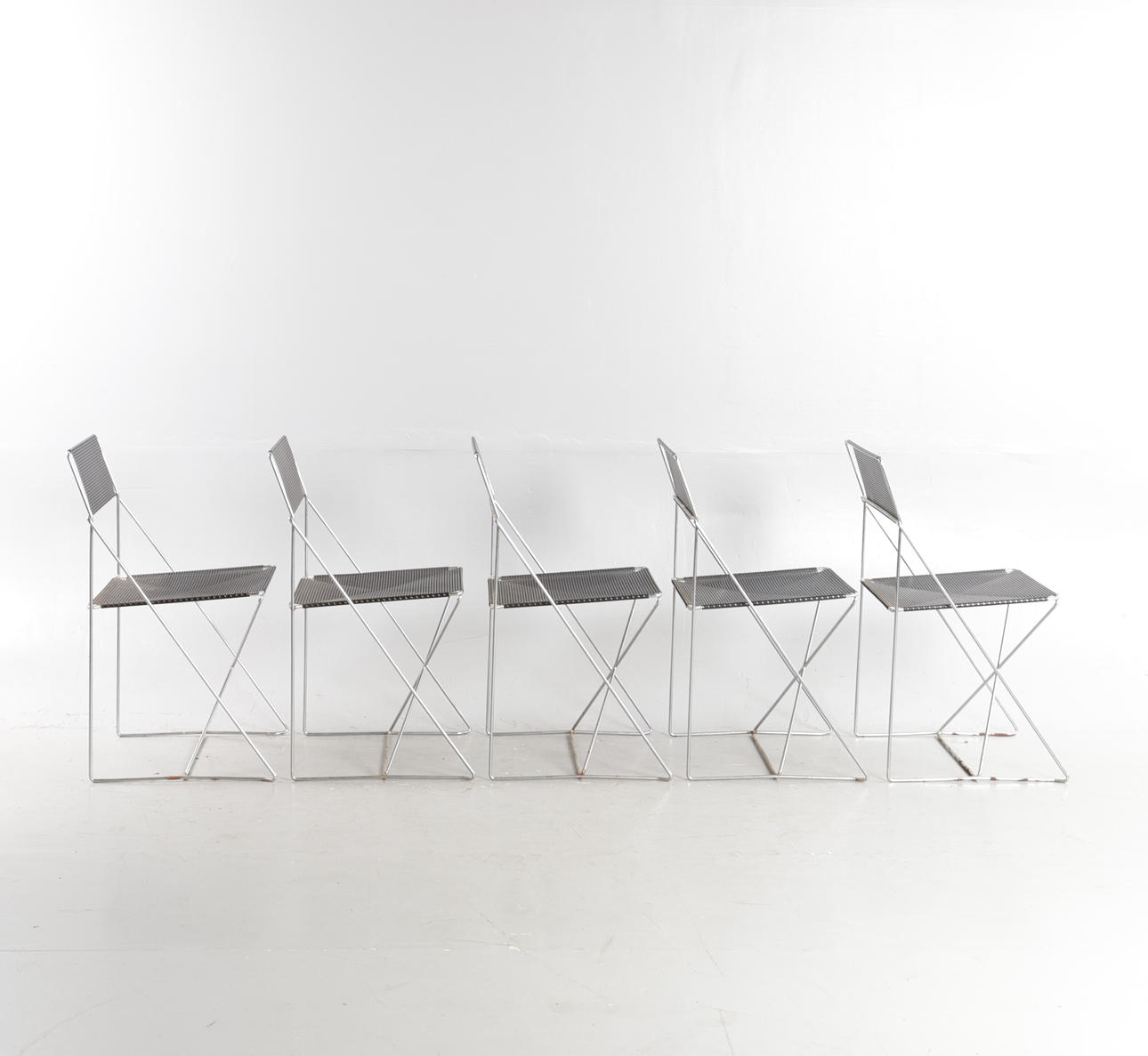 NIELS JØRGEN HAUGESEN. Five stackable dining chairs with steel frame, black lacquered metal seat and back. Designed in 1977. Manufactured and marked at Hybodan, model X-line (5).