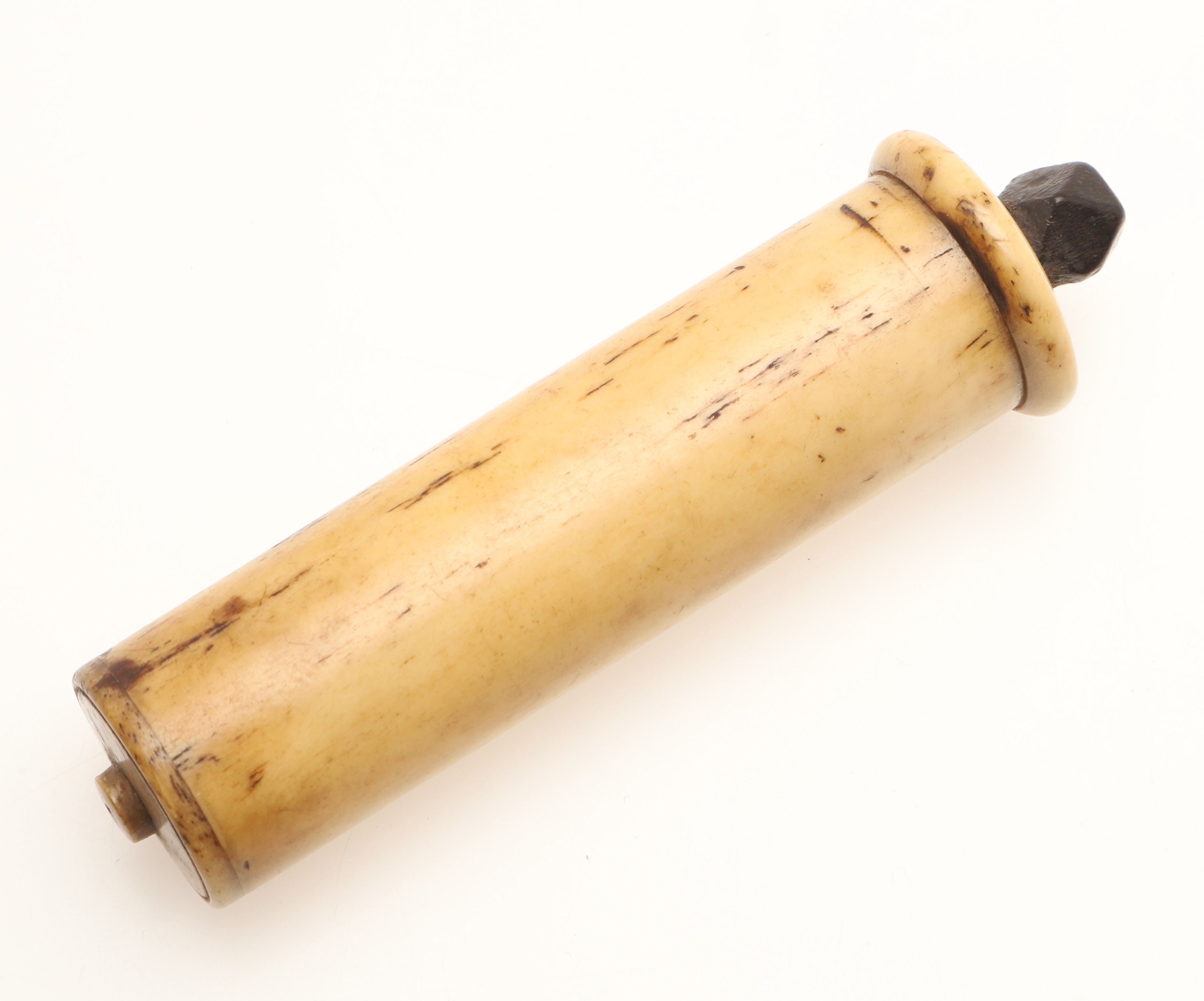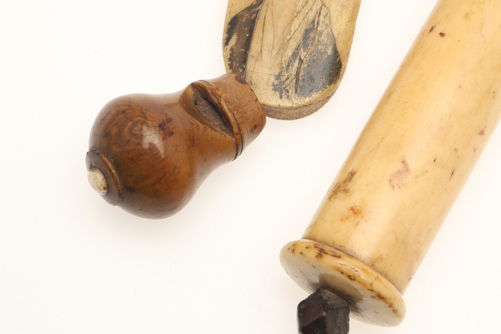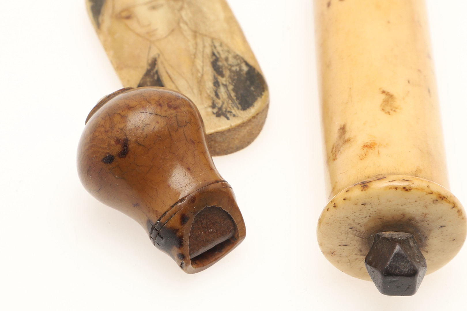 4434085. A COLLECTION OF CARVED BONE ARTEFACTS TO INCLUDE A NEEDLE CASE.