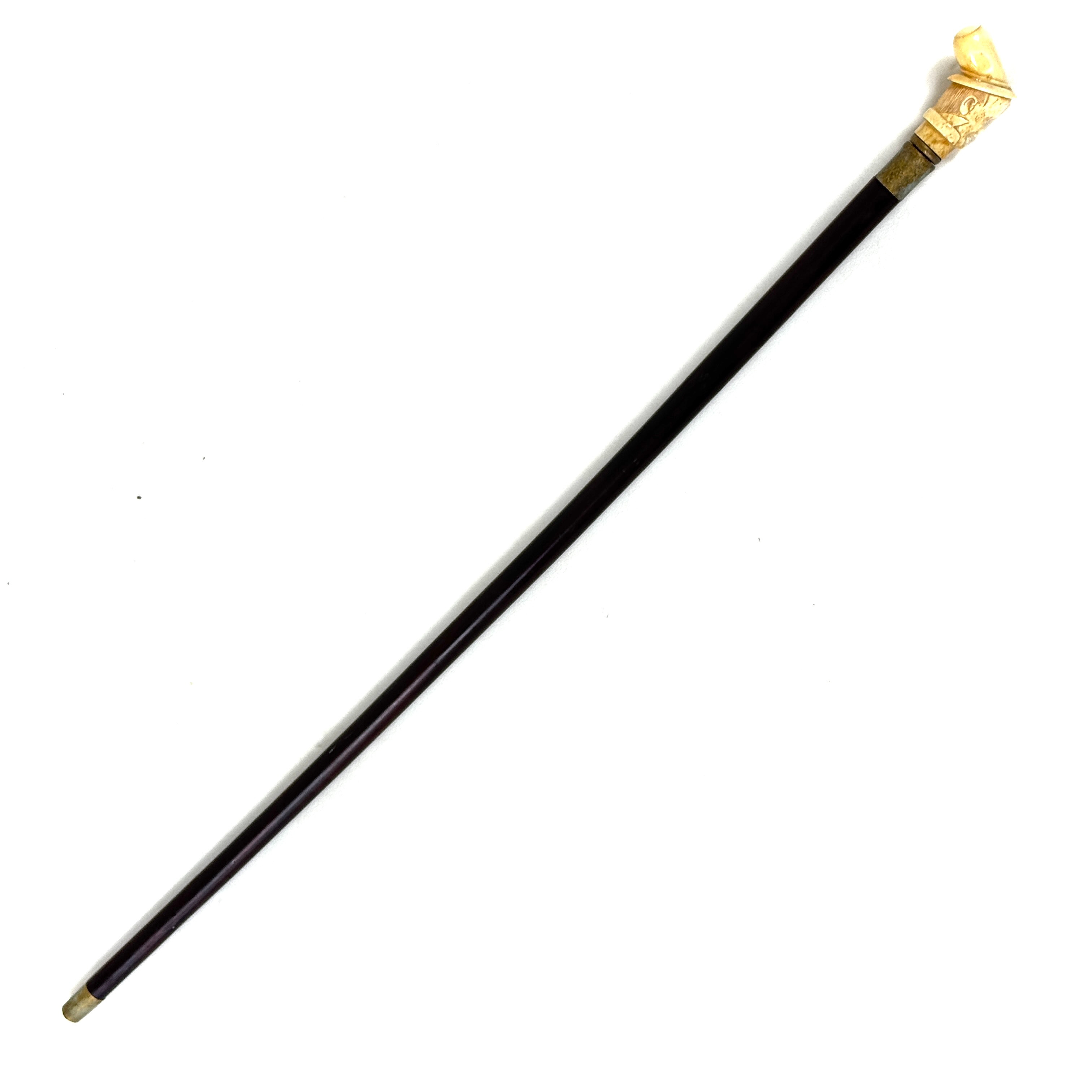 4434192. CARVED BONE HANDLED WALKING STICK.