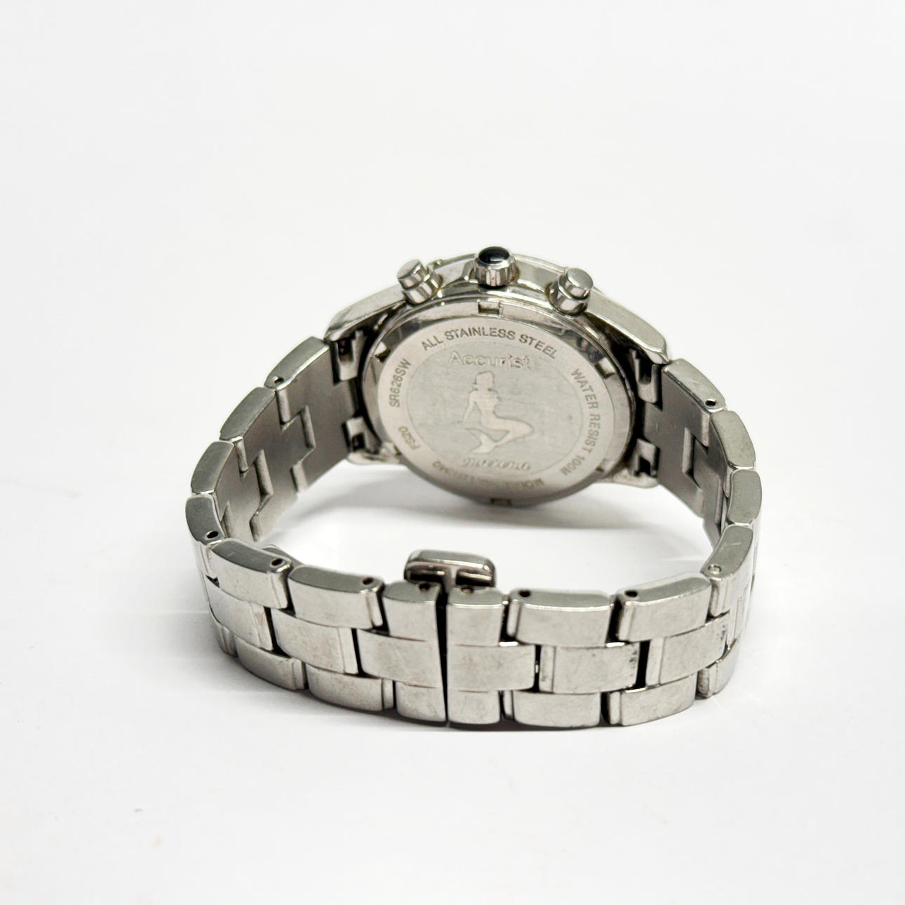 A ladies stainless steel Accurist wristwatch with mother of pearl dial.