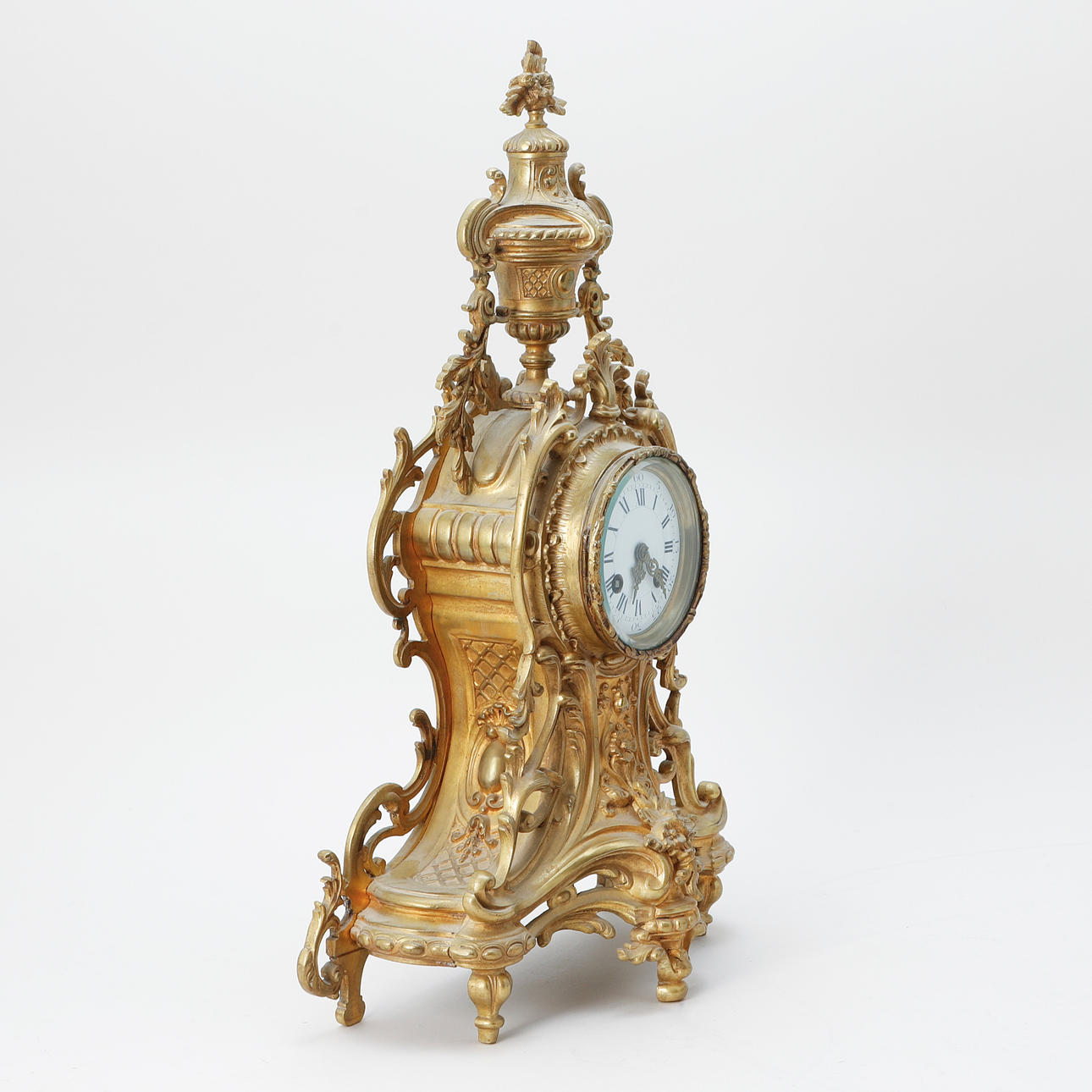 Gilded brass. Height approx. 48 cm. Pendulum included.