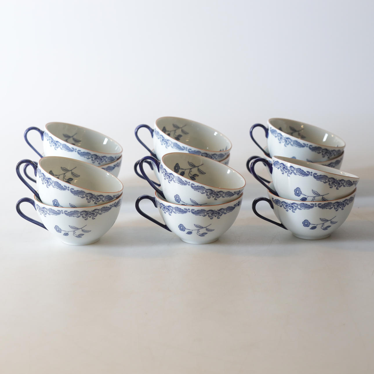 12 pcs, teacups + 12 pcs saucers. 8 pcs, coffee cups + 12 pcs kegs.
