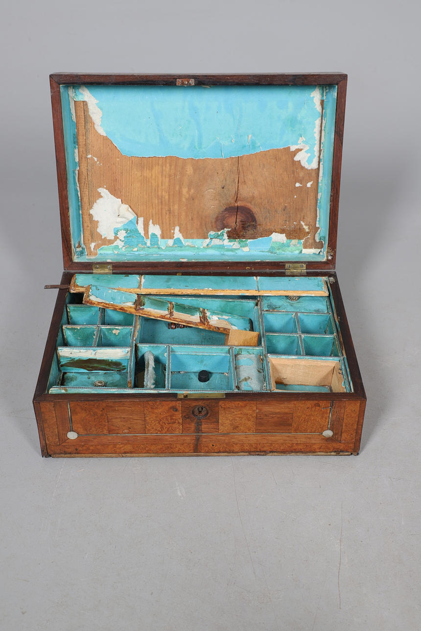 2 of the boxes with losses to the inlaid decoration and veneer. Various marks and scratches all over. See online images.