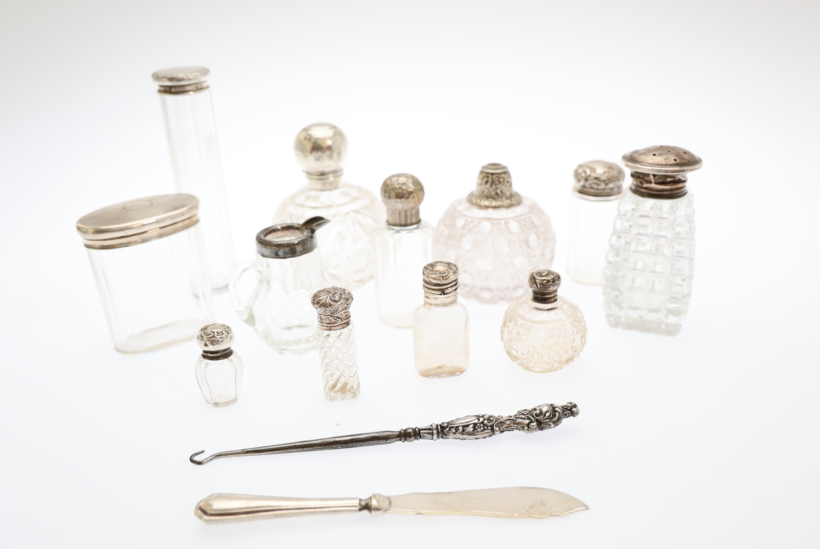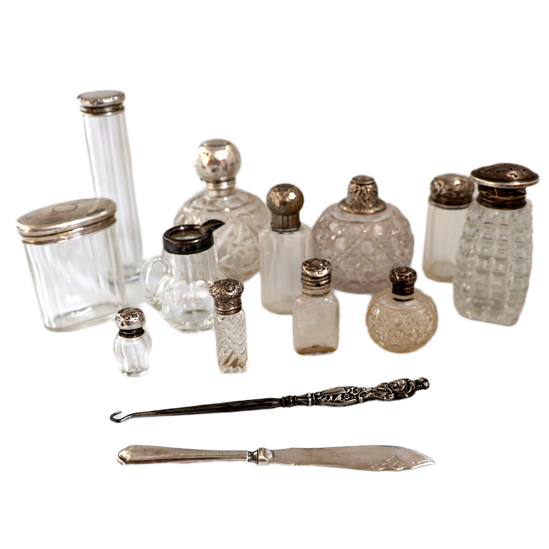 4437145. SILVER MOUNTED DRESSING TABLE BOTTLES.