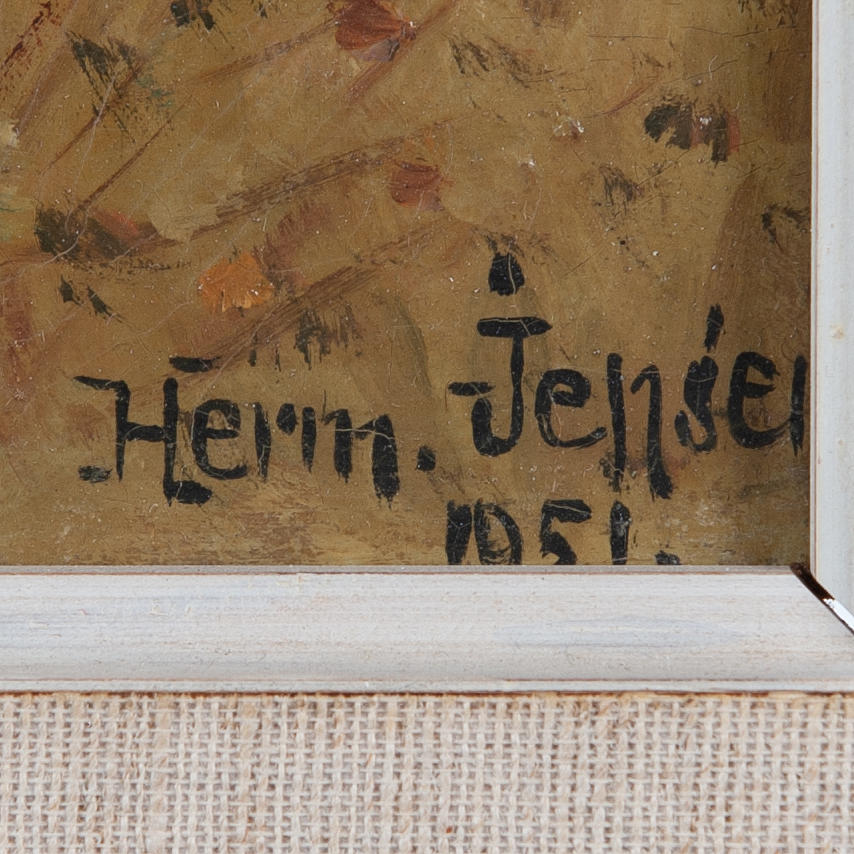4437243. HERMAN JENSEN. Oil on panel. Grazing horse. Signed and dated.