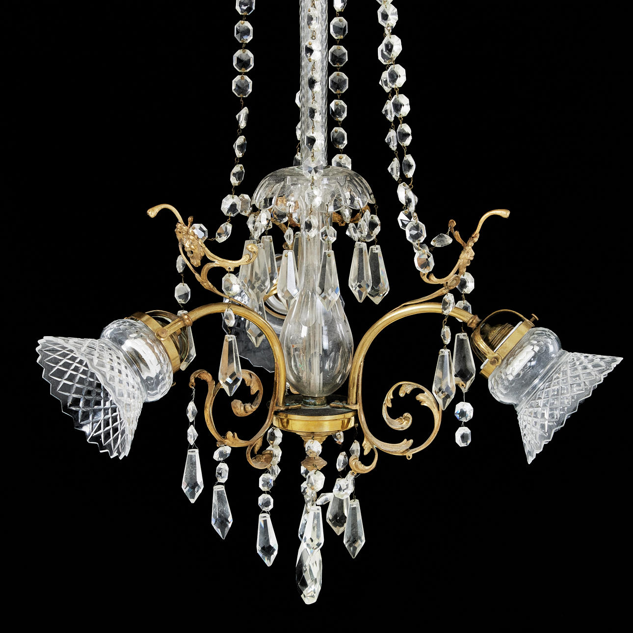CEILING CHANDELIER, circa 1900, 3 light points, frame in brass.