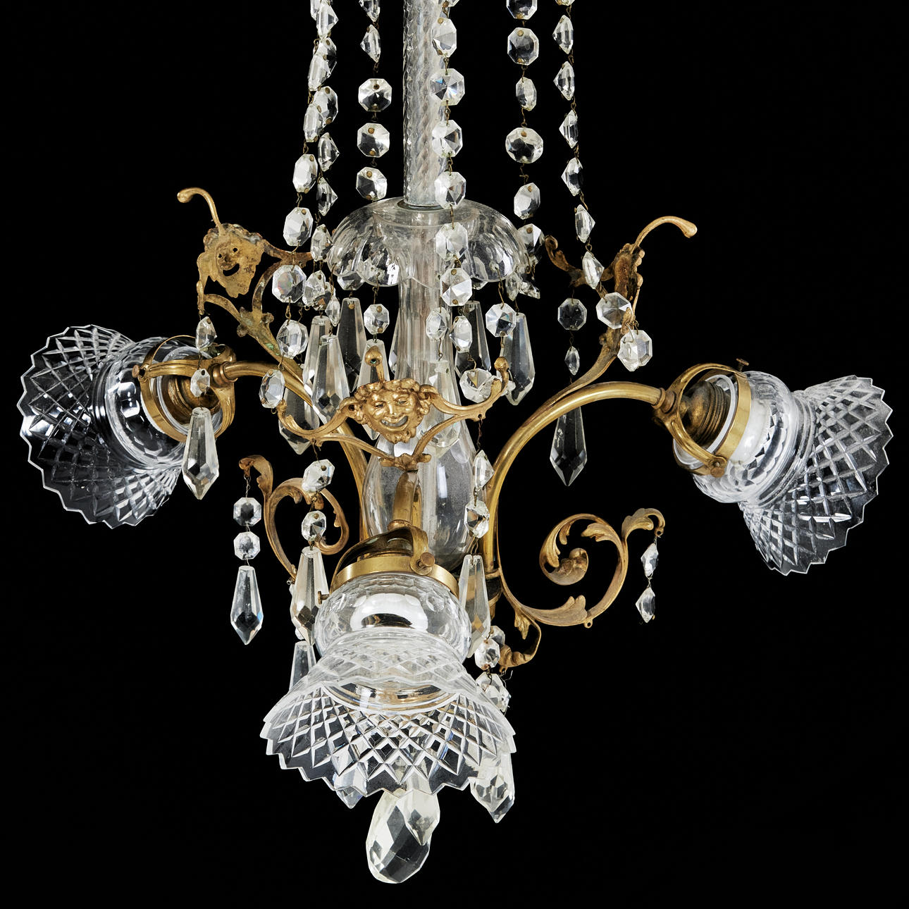4437482. CEILING CHANDELIER, circa 1900, 3 light points, frame in brass.
