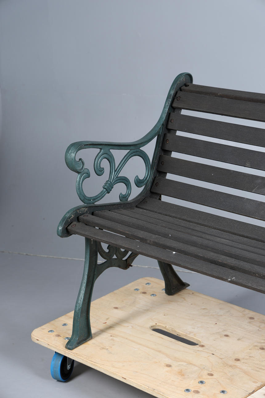 4439365. A CAST IRON AND TEAK GARDEN BENCH.