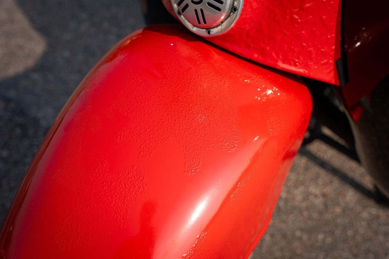 Good renovated condition, however large areas with very uneven color on the front part.