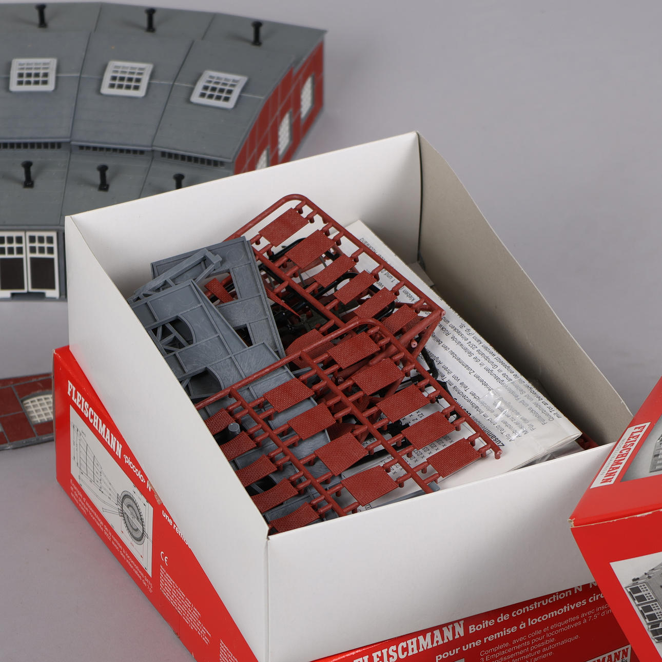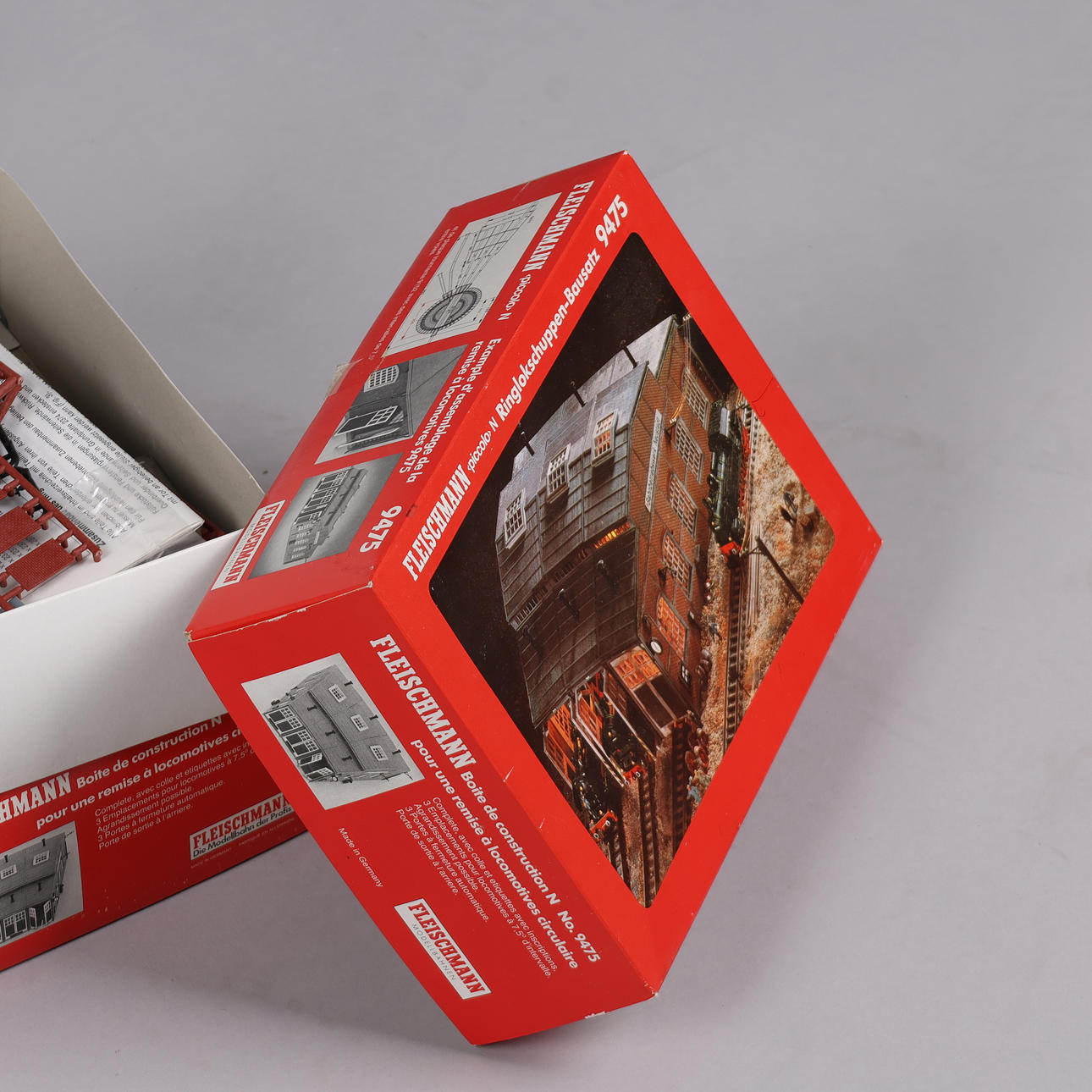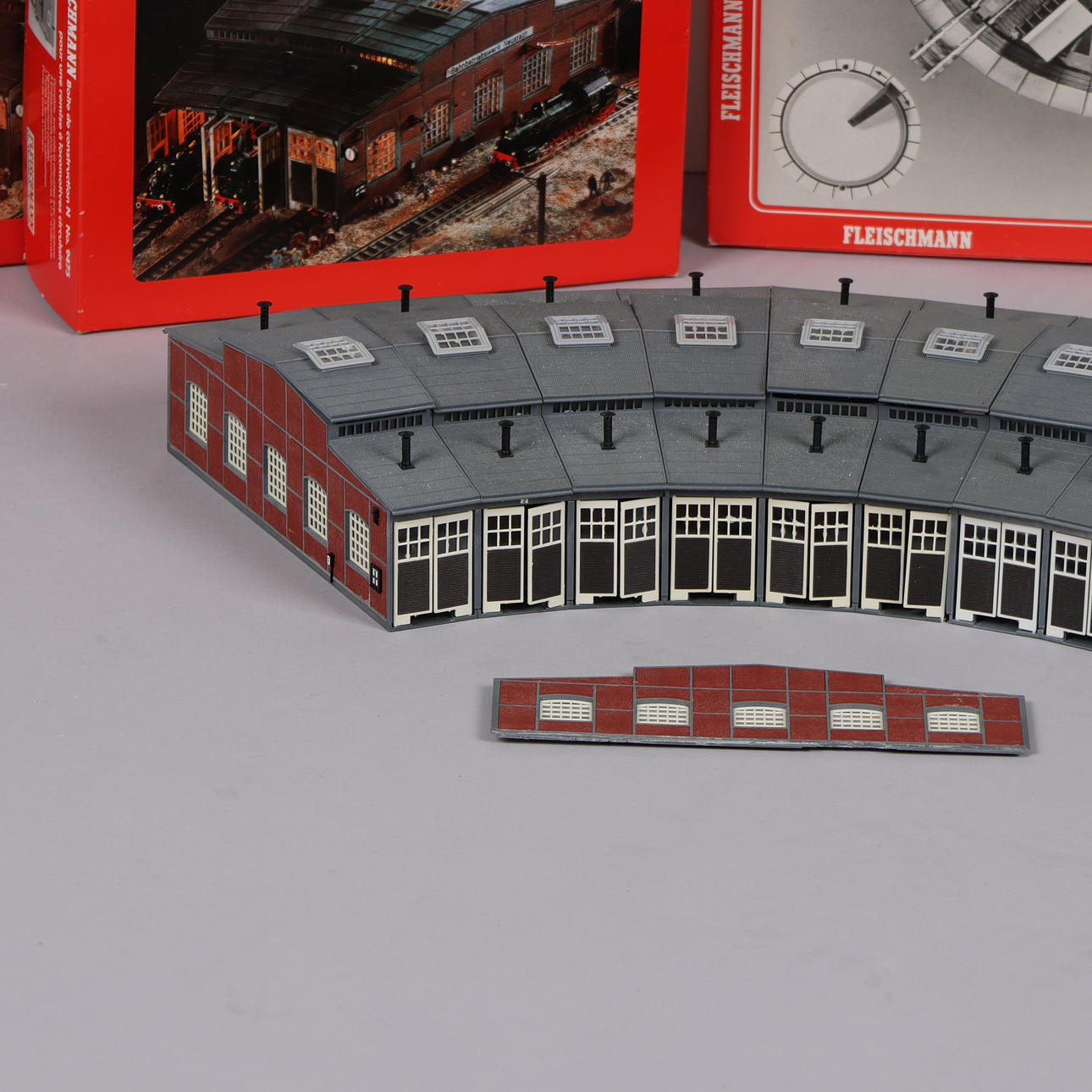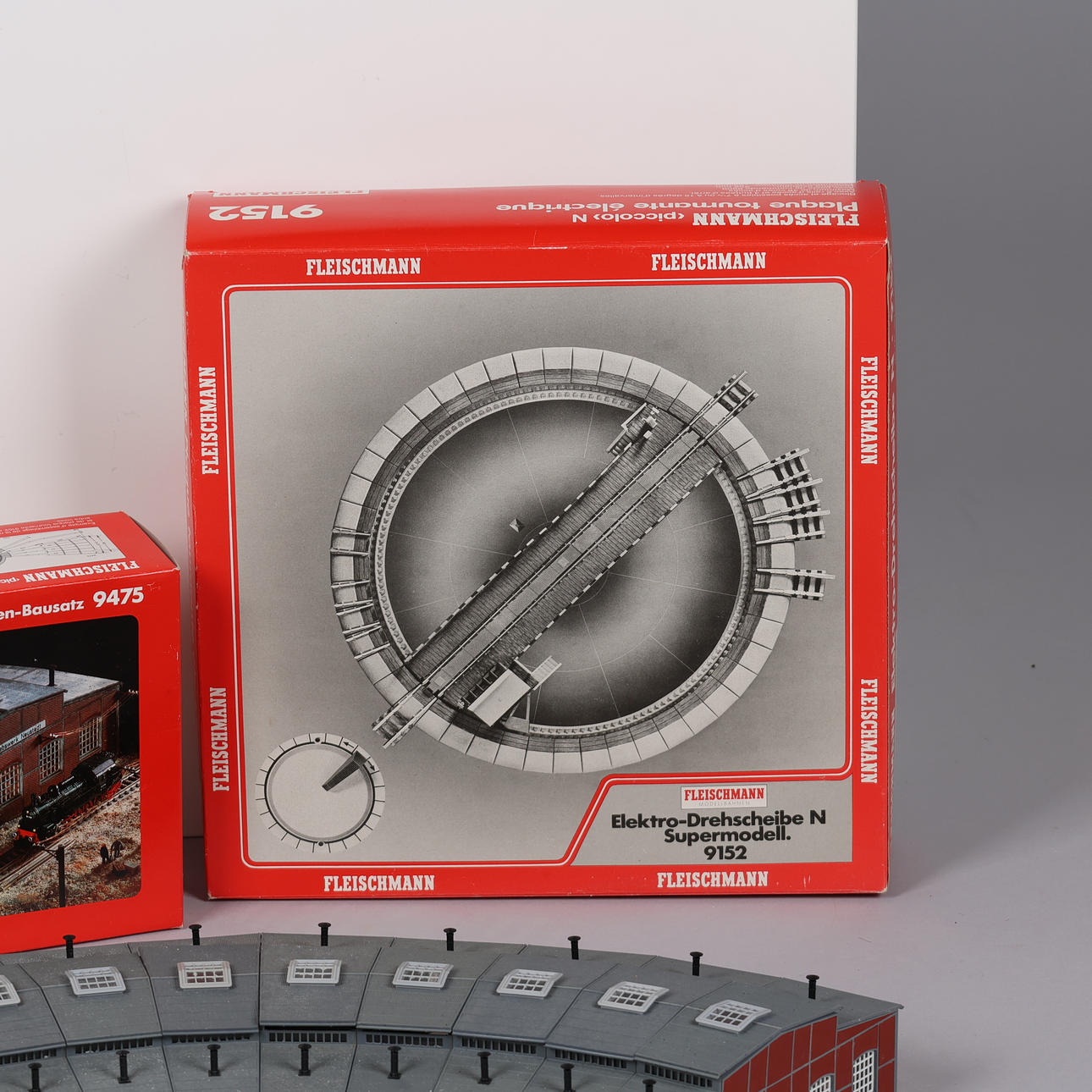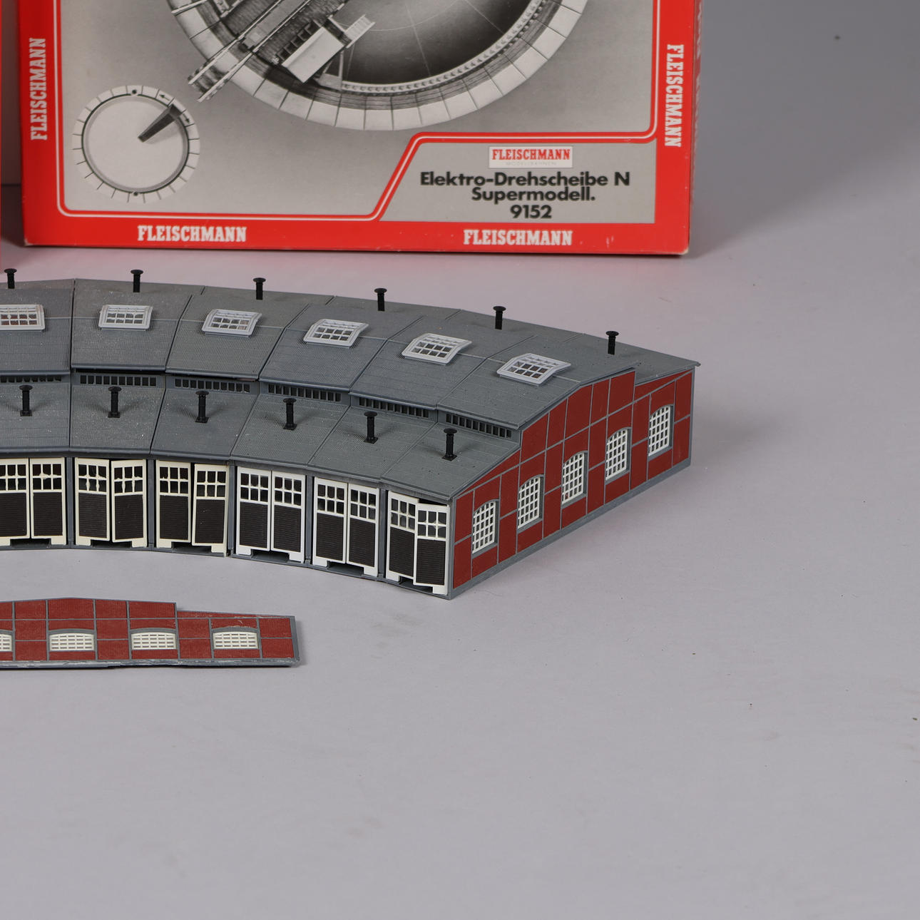 FLEISCHMANN Elektro-Drehscheibe N Supermodel 9152 and three Fleischmann remissions, Ringlokschuppen-Bausatz 9475.