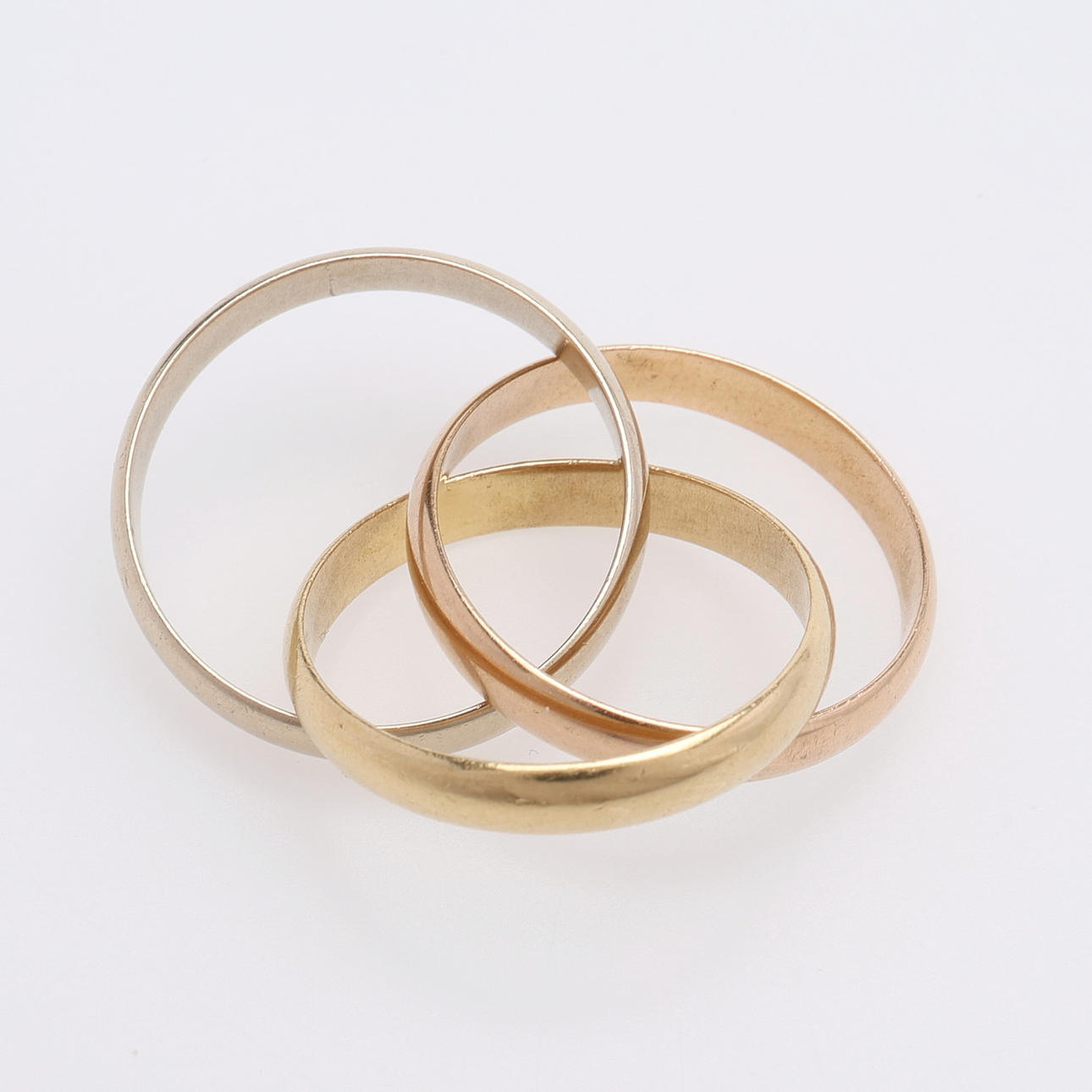 4439965. RING, IN THREE-COLOURED 18K GOLD, Approx. 8.2 g.