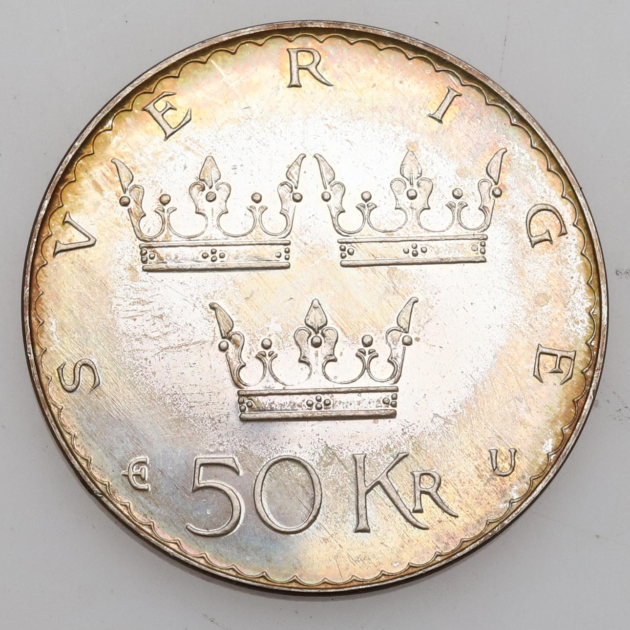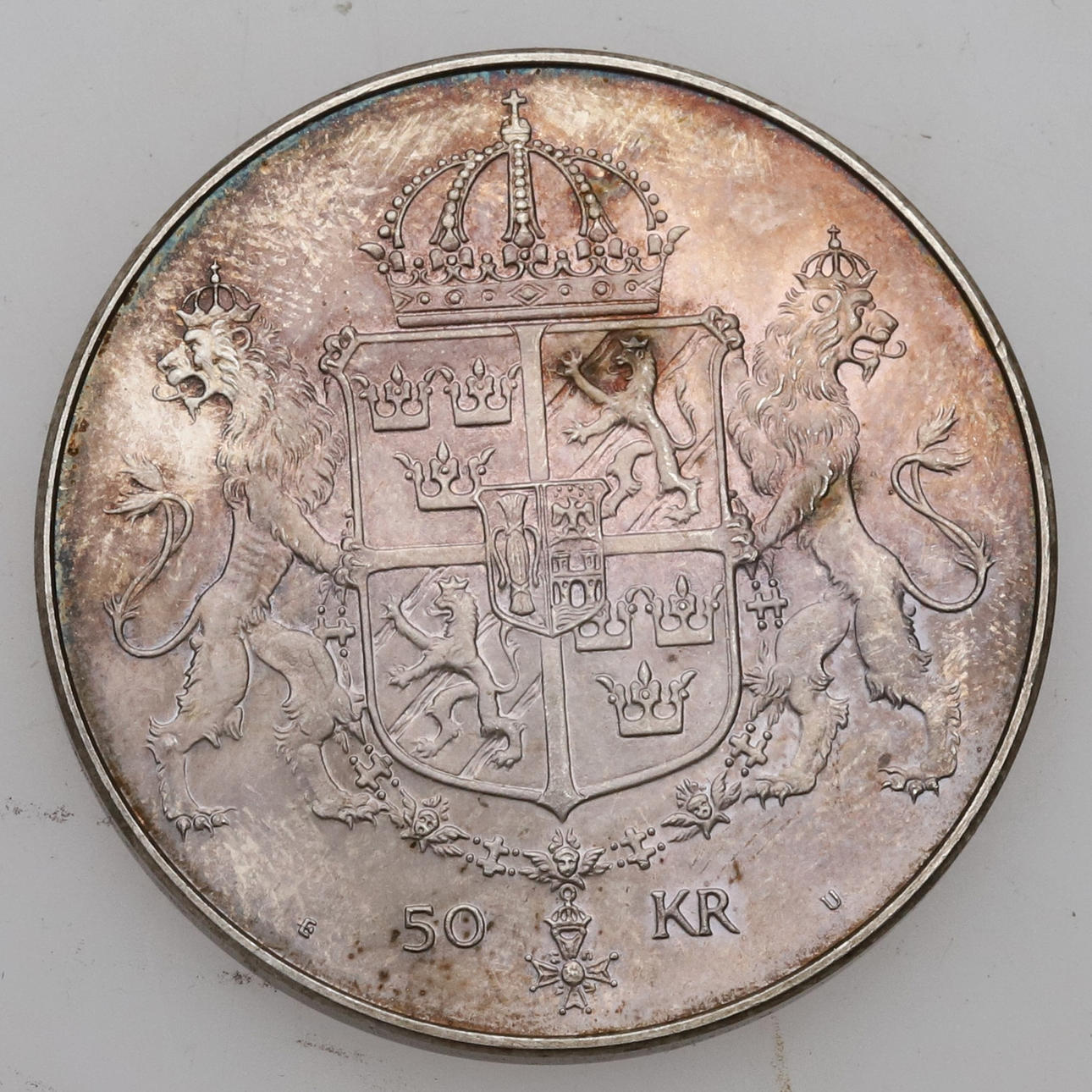 2 coins 50 kr “All public power in Sweden emanates from the people” 925 silver, 54 grams.