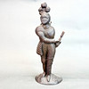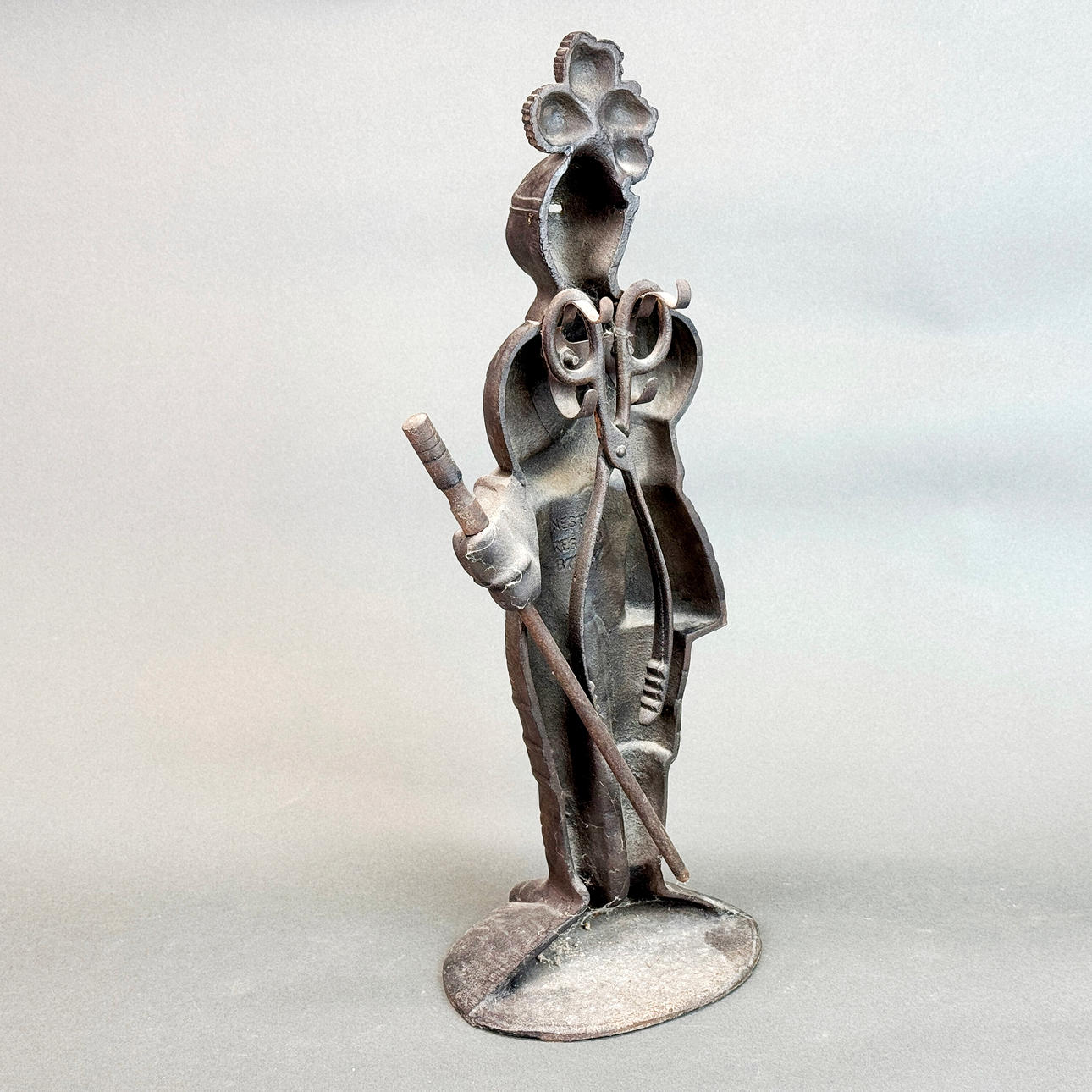 A pair of painted spelter figures of children together with a cast iron fireside set, H. 37cm.