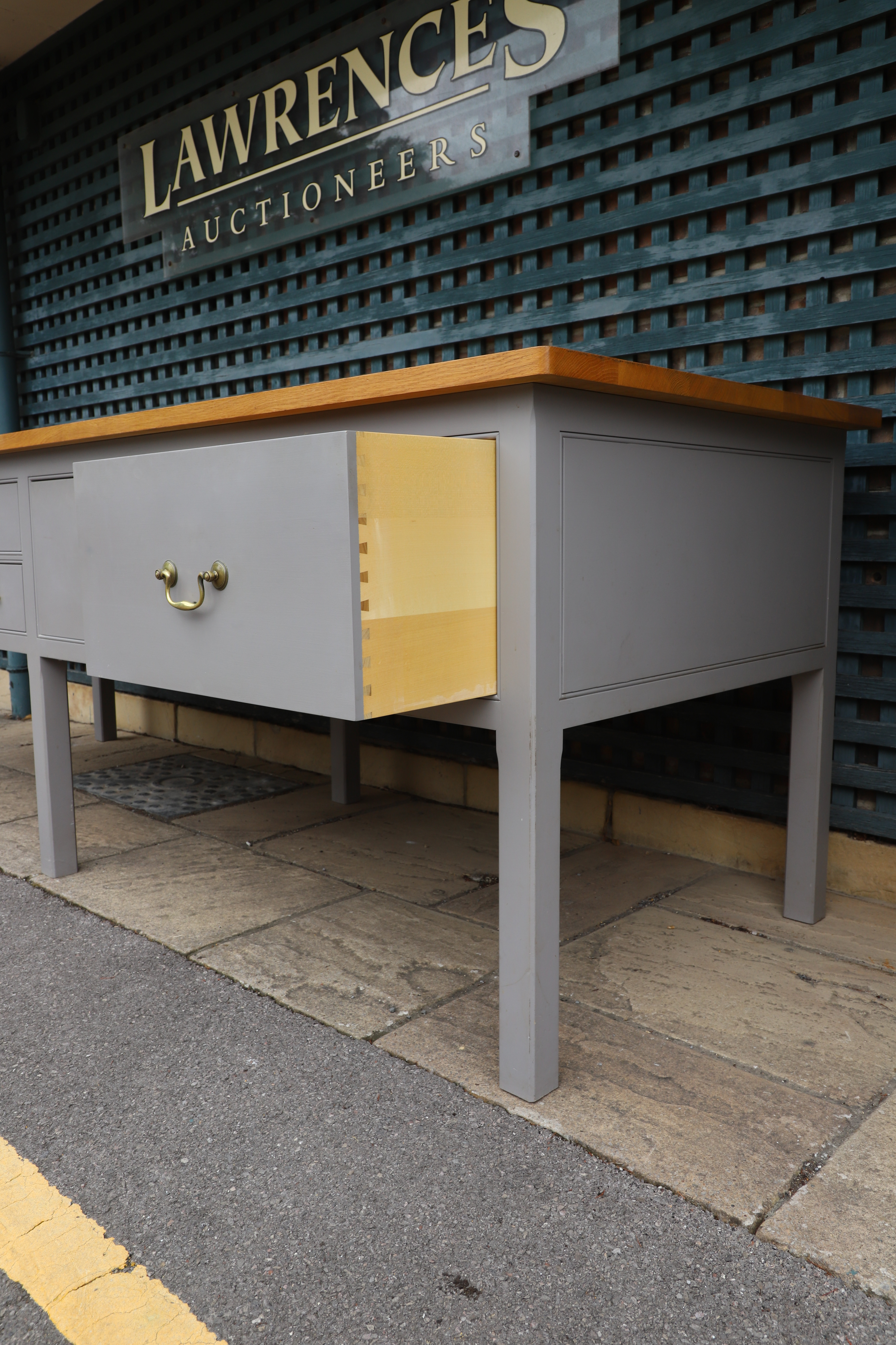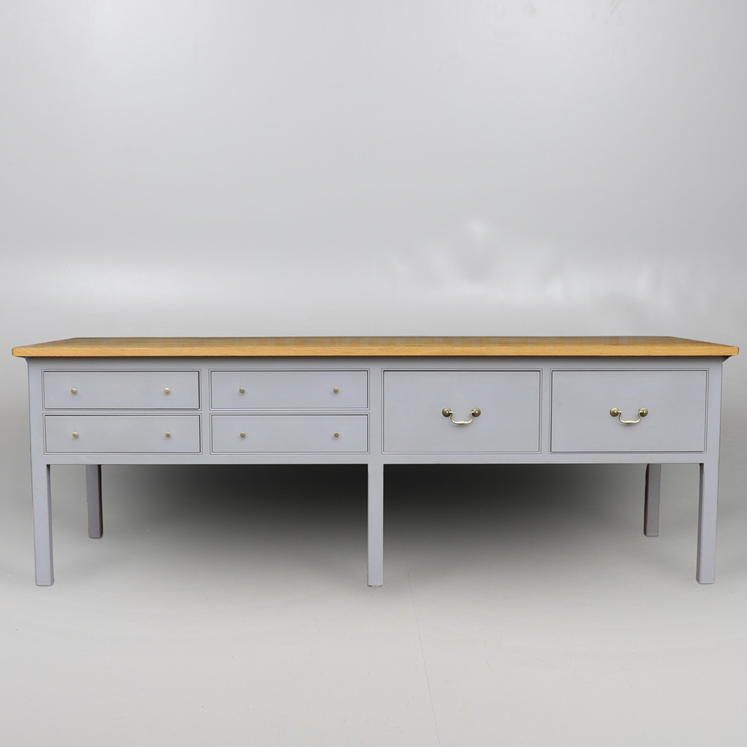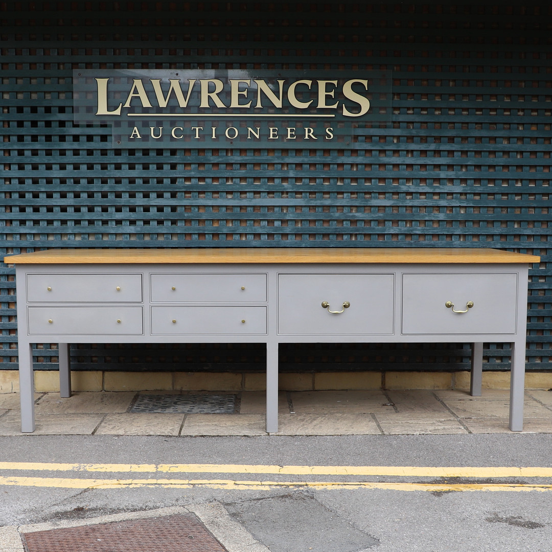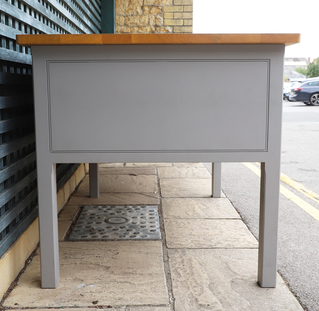 4440676. A PLAIN ENGLISH BESPOKE SOLID OAK KITCHEN PREP TABLE.