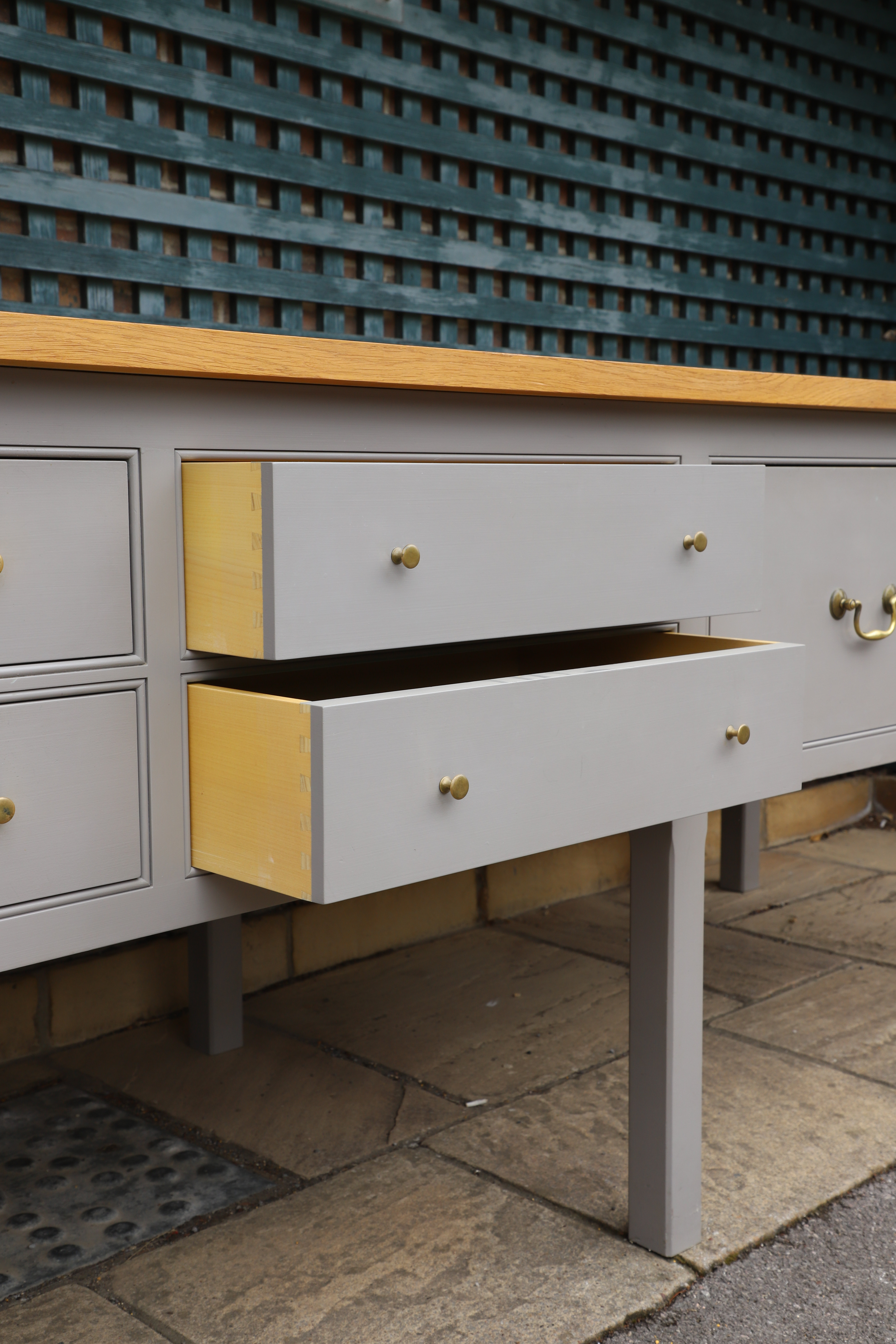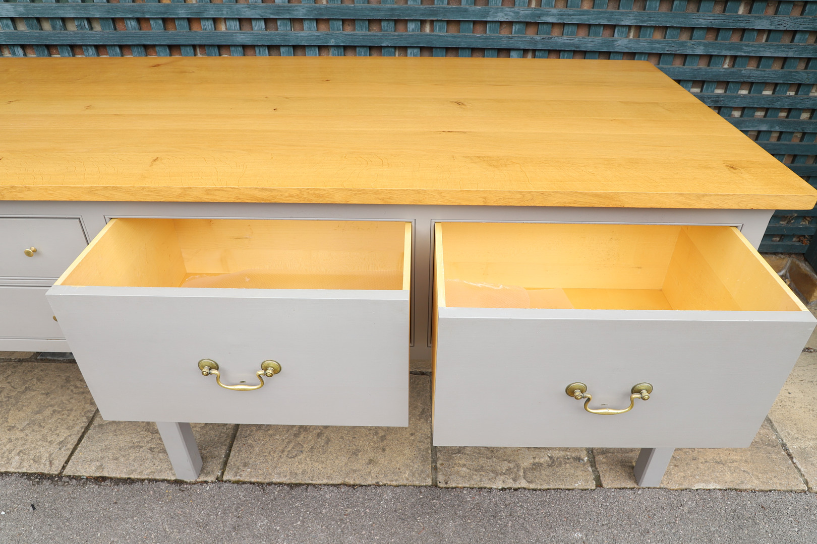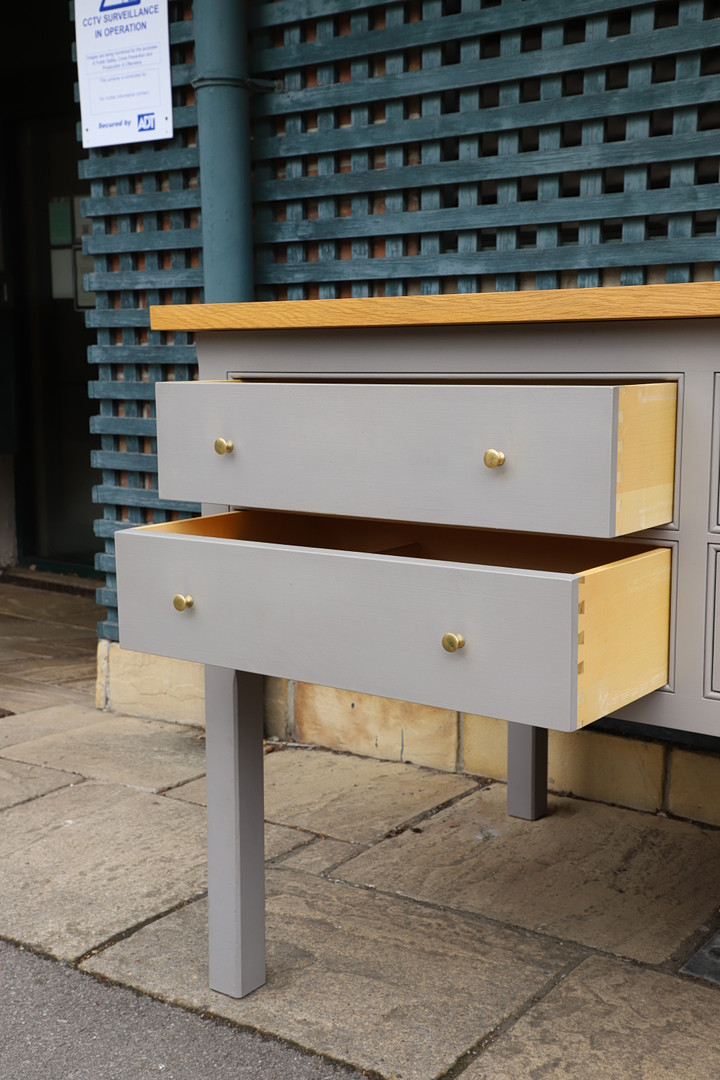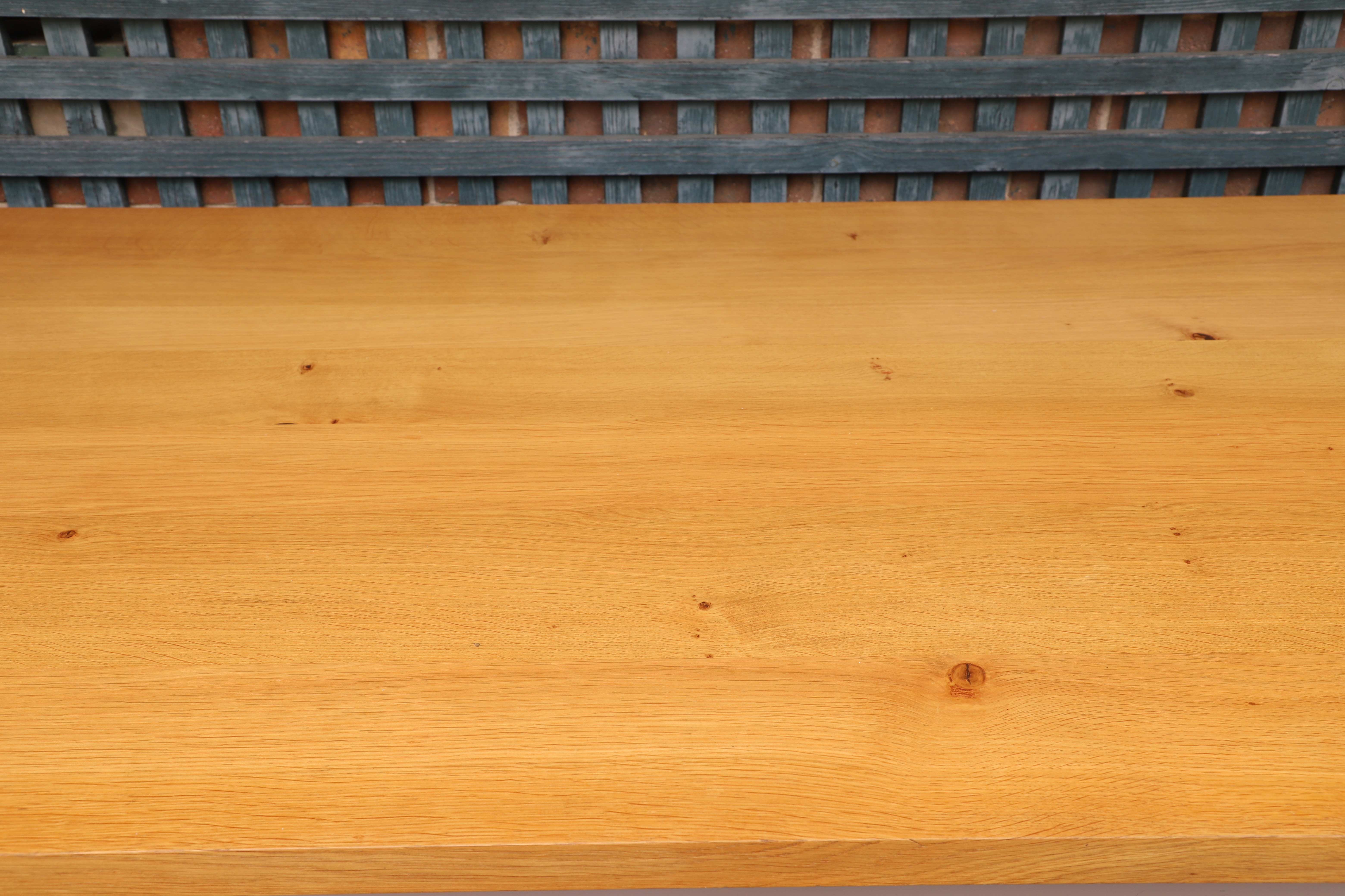 4440676. A PLAIN ENGLISH BESPOKE SOLID OAK KITCHEN PREP TABLE.