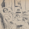 Both signed. Woman at coffee table (possibly depicting artist's wife Gerda) leaf dimensions 13x16.5 cm, figures in interior, leaf dimensions 11x16 cm. Frame dimensions 13x18 cm.