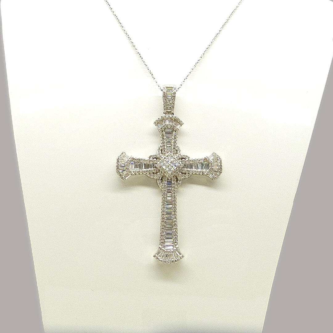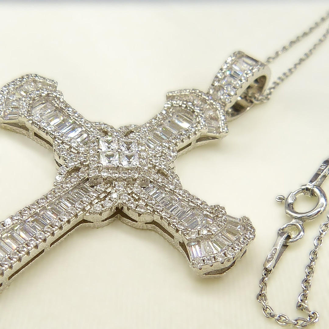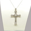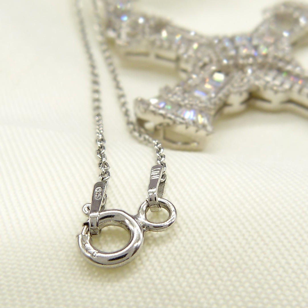 A Silver (Stamped 925) Cross Pendant Set With Cubic Zirconia Hung On a Silver (Stamped 925) Chain.