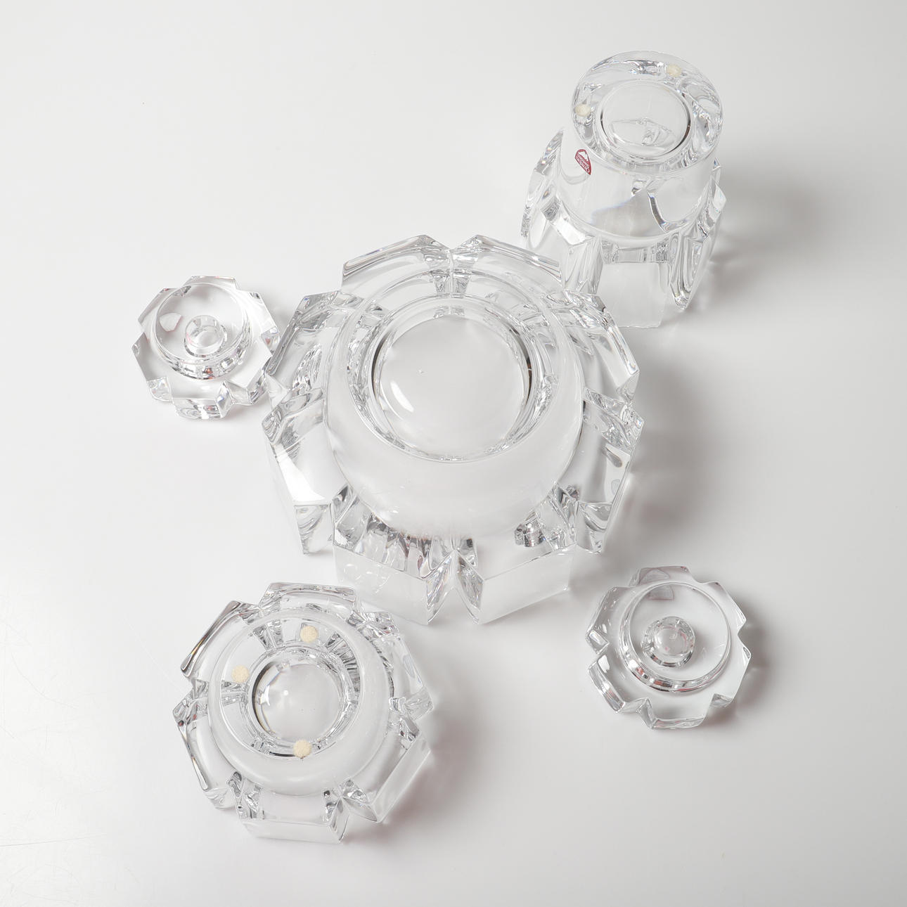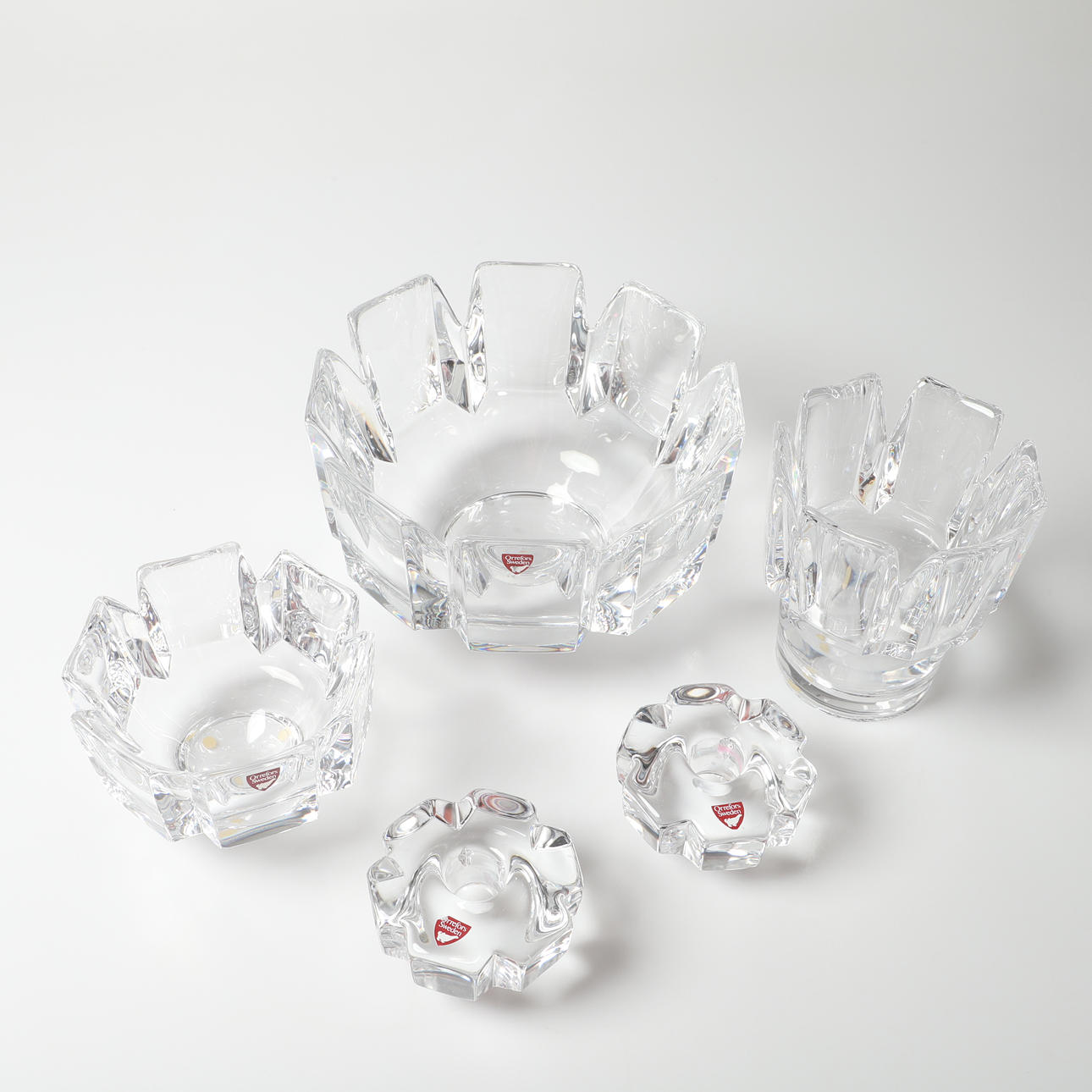 3 bowls, height 8-11-12,5, diameter approx. 10-11-18 cm 2 candlesticks, height 4, diameter approx. 8 cm.
