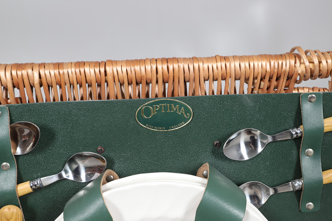 4441645. AN OPTIMA WICKER PICNIC BASKET AND CONTENTS.