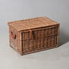 Two plates missing (one of each size). Hamper with general wear, one leather fastener missing.