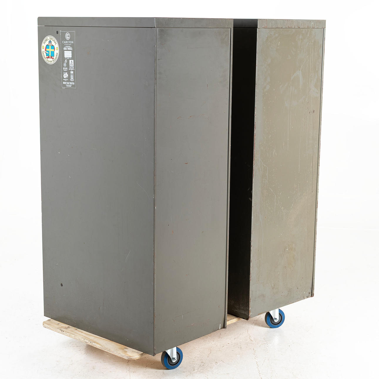 A pair of mid 1900's tin filing cabinets.
