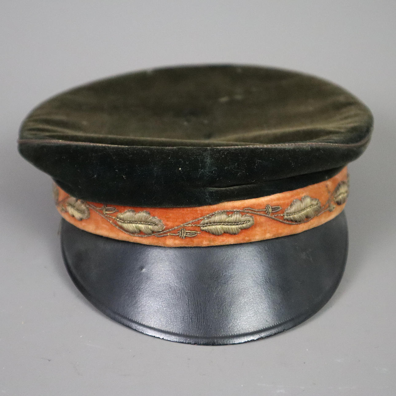 1 student connecting cap and 1 Cerevis with floral metal embroidery, inside with seller's stamp “H. Appel Studenten-Artikel Frankfurt a.M. 151 Bockenheimer Landstr. 151"