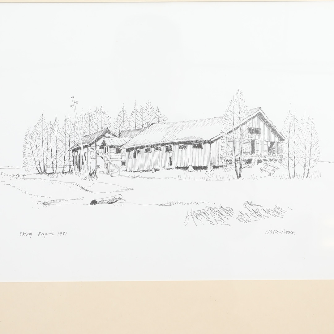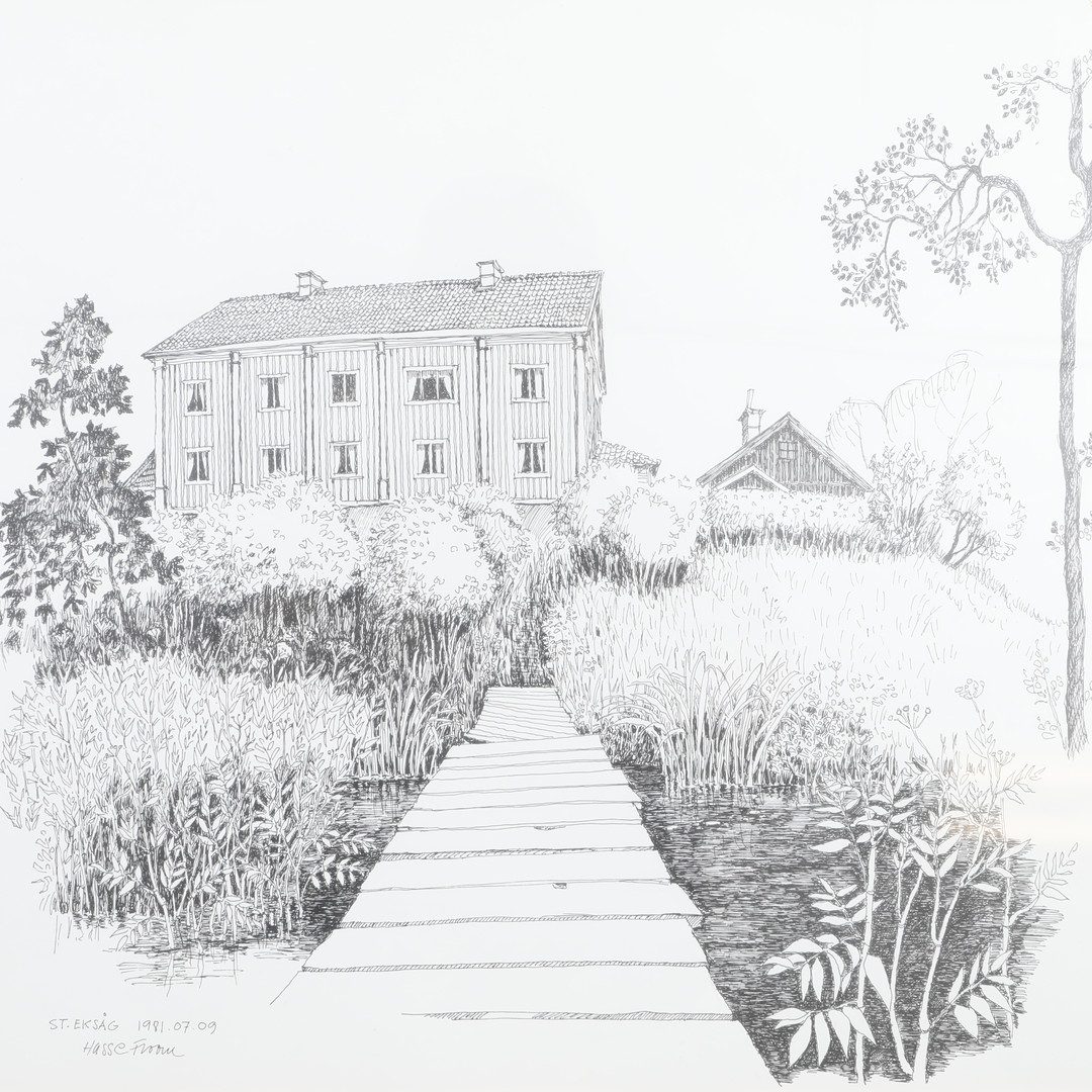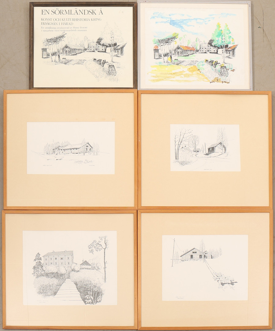 4442617. HASSE FROOM. Cultural buildings, 6 lithographs, and one with watercolour, 4, signed, and dated, 1981.