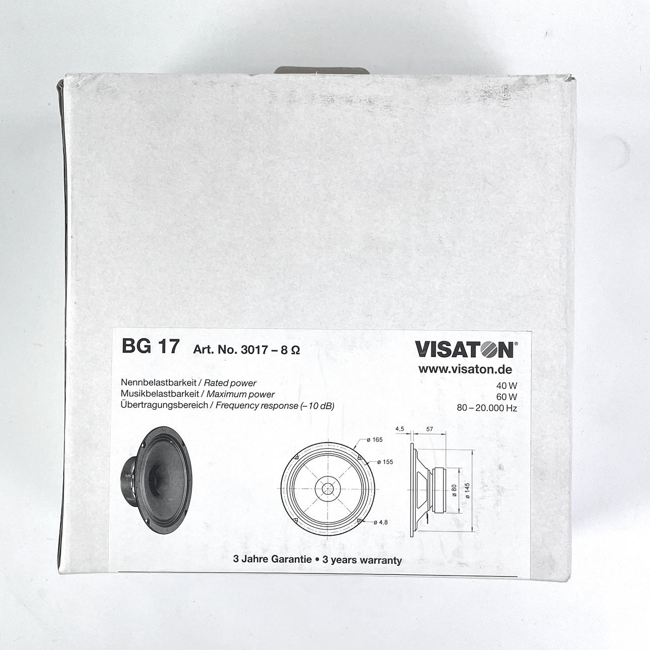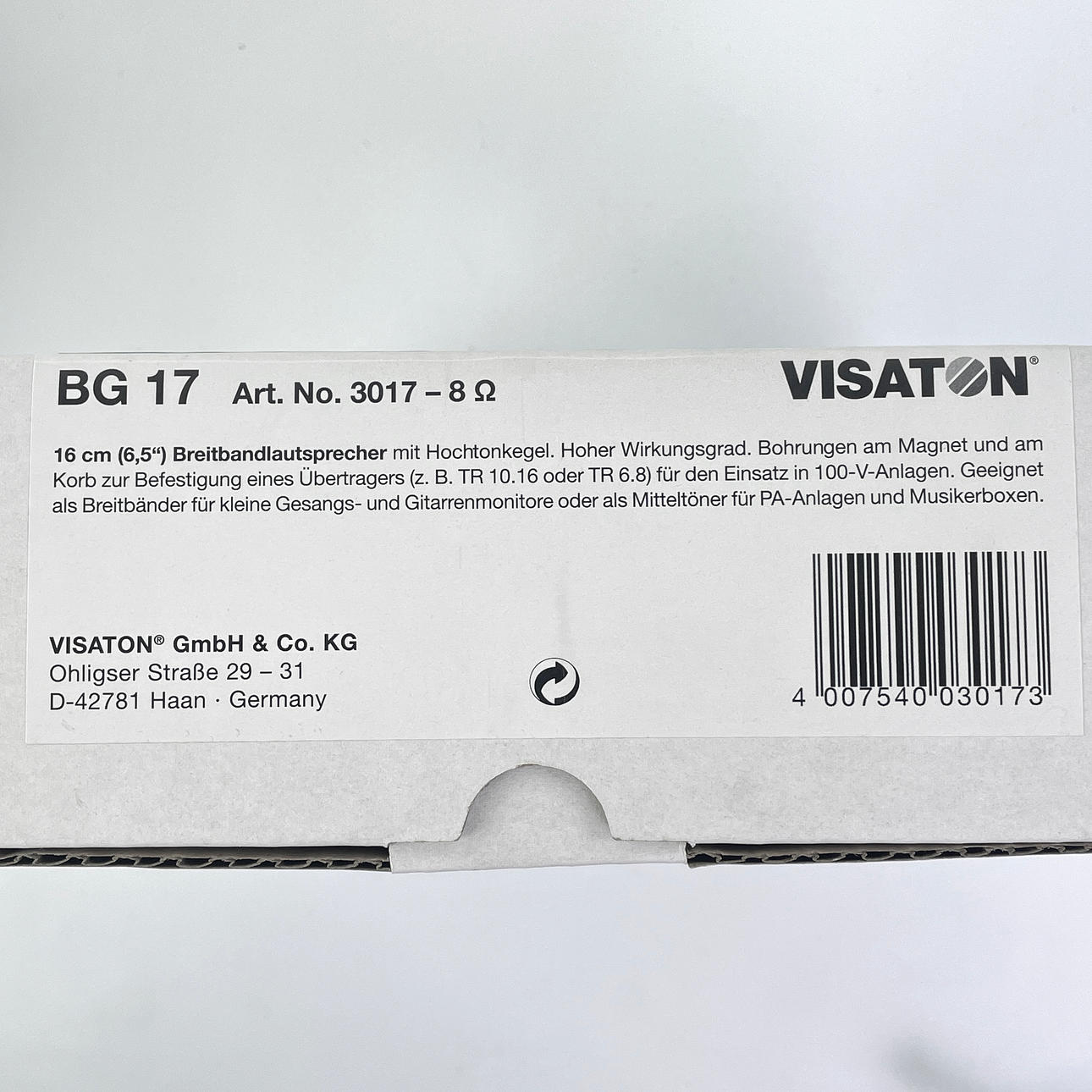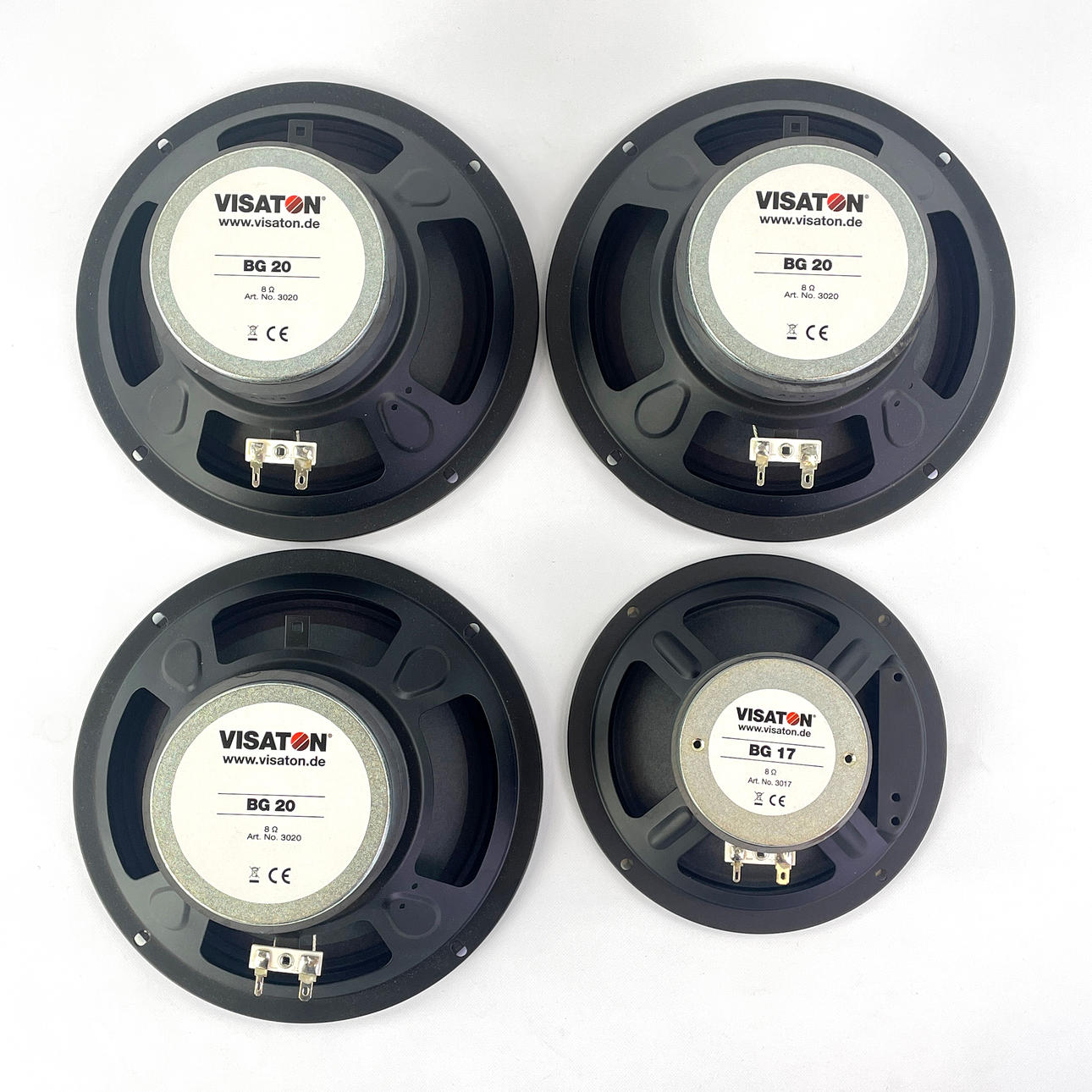 SPEAKER ELEMENTS, 4 pcs. Visaton “BG20" & “BG17", 8 ohms, new in packaging.