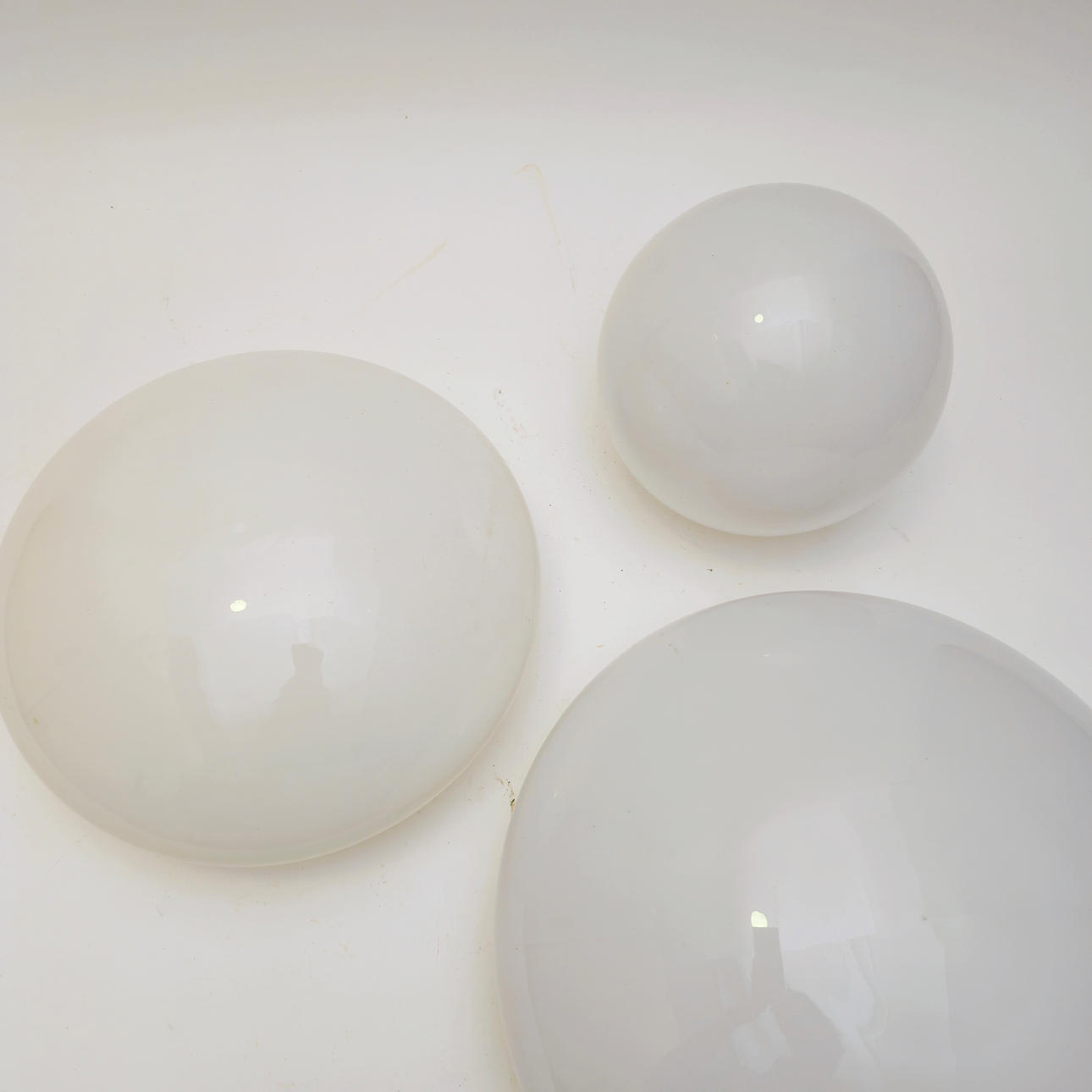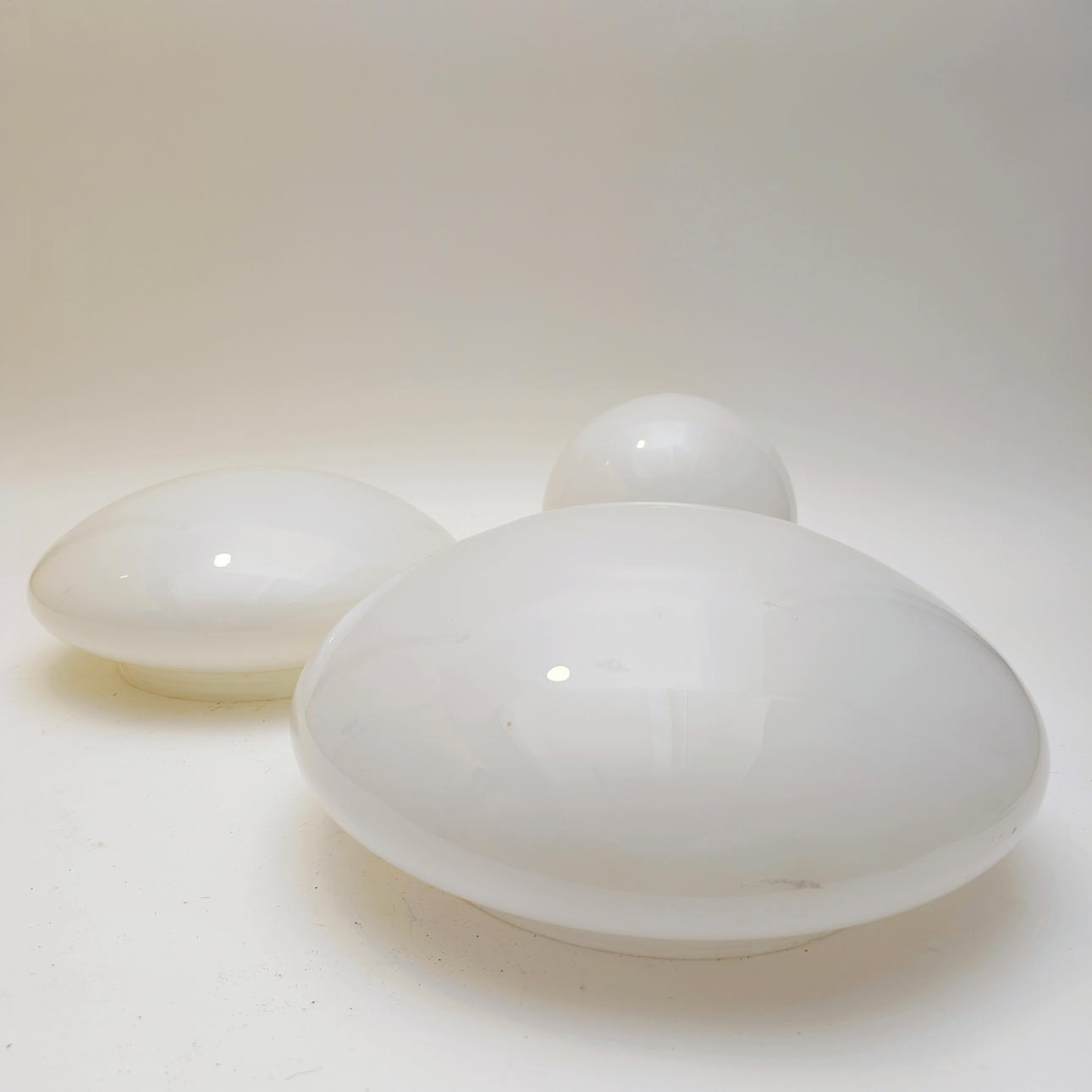 THREE OVAL AND SPHERICAL WHITE CRYSTAL TULIPS.