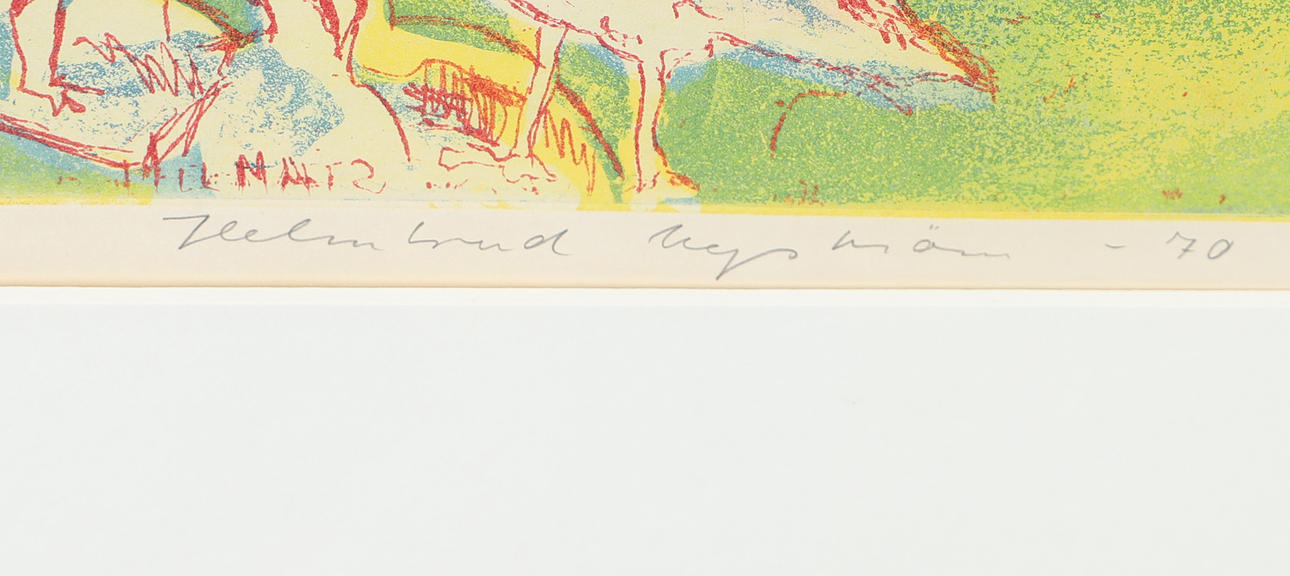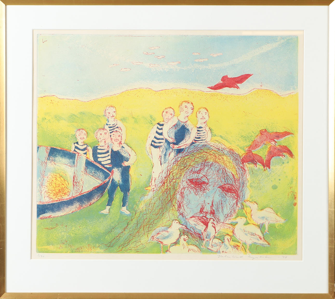 4444299. HELMTRUD NYSTRÖM. Figures on the beach, etching, signed -70.