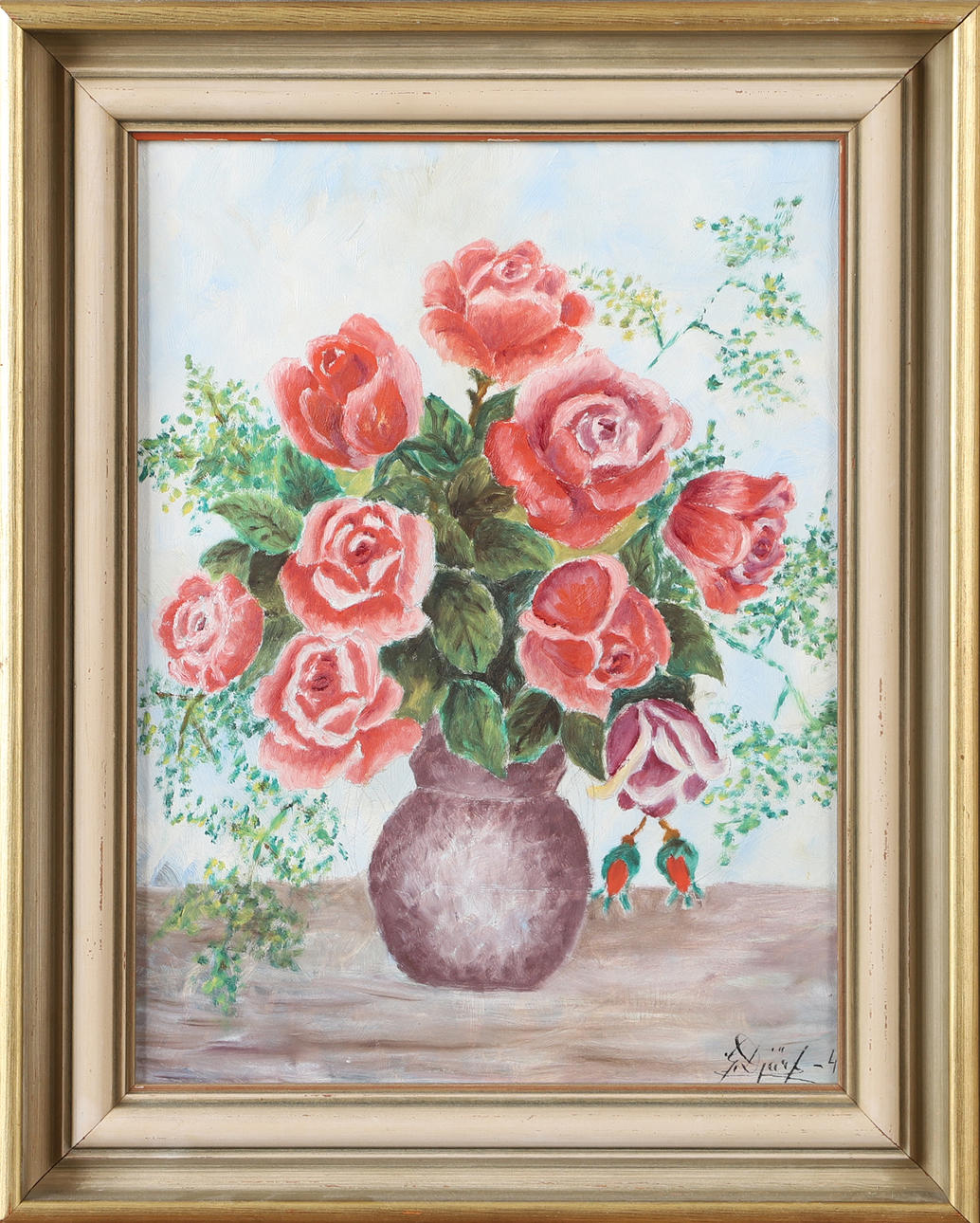 4444478. OIDENTIFIERAD KONSTNÄR. Flower still life, oil on panel, signed Bold.