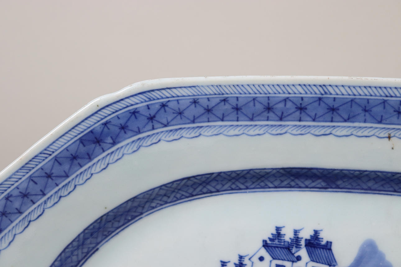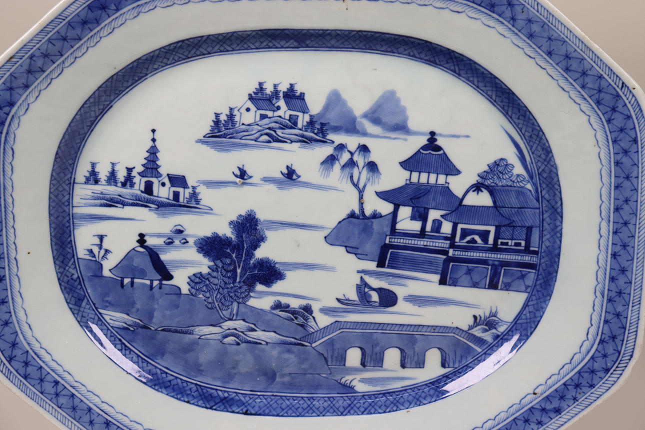 Porcelain, China, Jiaqing period (1796-1820), decor in underglaze blue depicting river landscape with pagodas