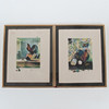 BENGT LANDIN. Color lithographs, two pieces, composition with rooster.